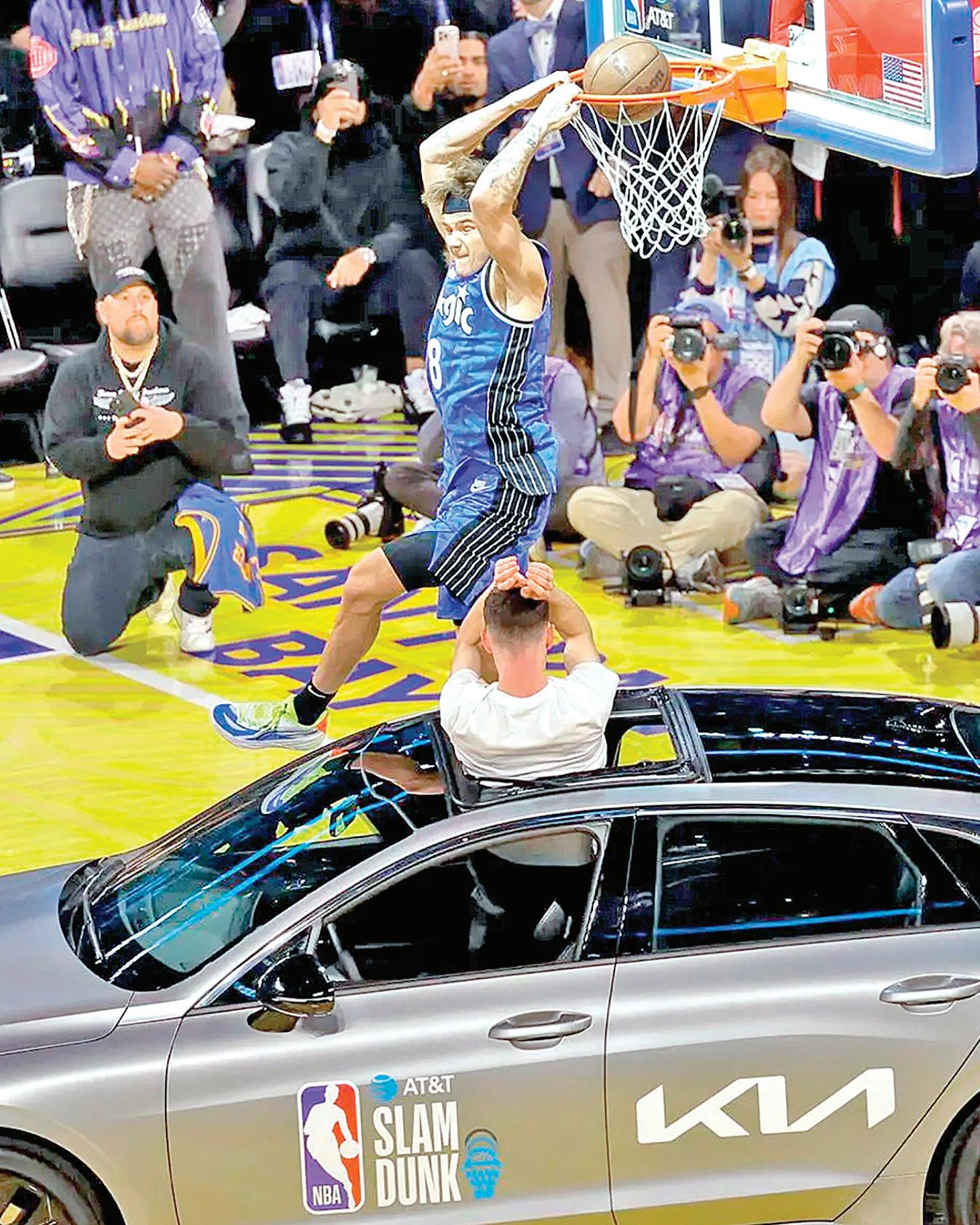 El tercer mate de McClung fue tan difícil de realizar como de describir. Debajo del aro se situó un compañero con un balón y girando sobre sí mismo con un ‘hoverboard’. Al lado de la canasta, otro compañero se subió a una escalera con otro balón. Todo tuvo sentido cuando McClung fue de cabeza a la canasta, agarró el balón del ‘hoverboard’ y el otro con su mano izquierda para meter los dos a la vez. McClung certificó su triplete con un último mate, en el que saltó por encima del alapívot Evan Mobley tocó el balón con el aro antes de sepultarlo en la red. l EFE