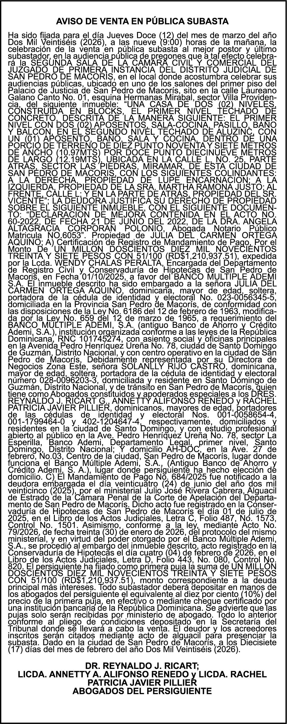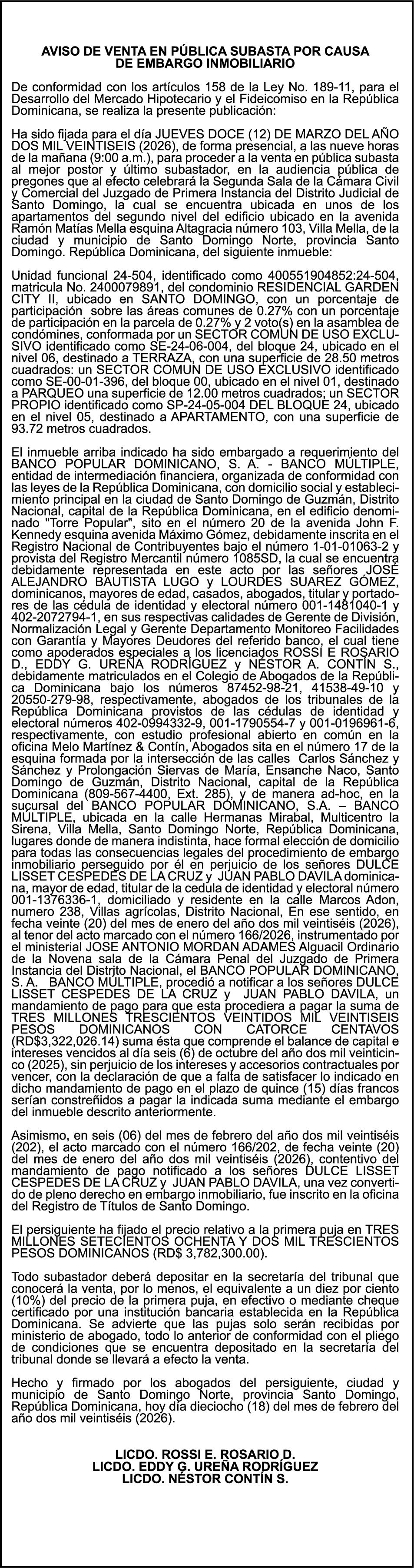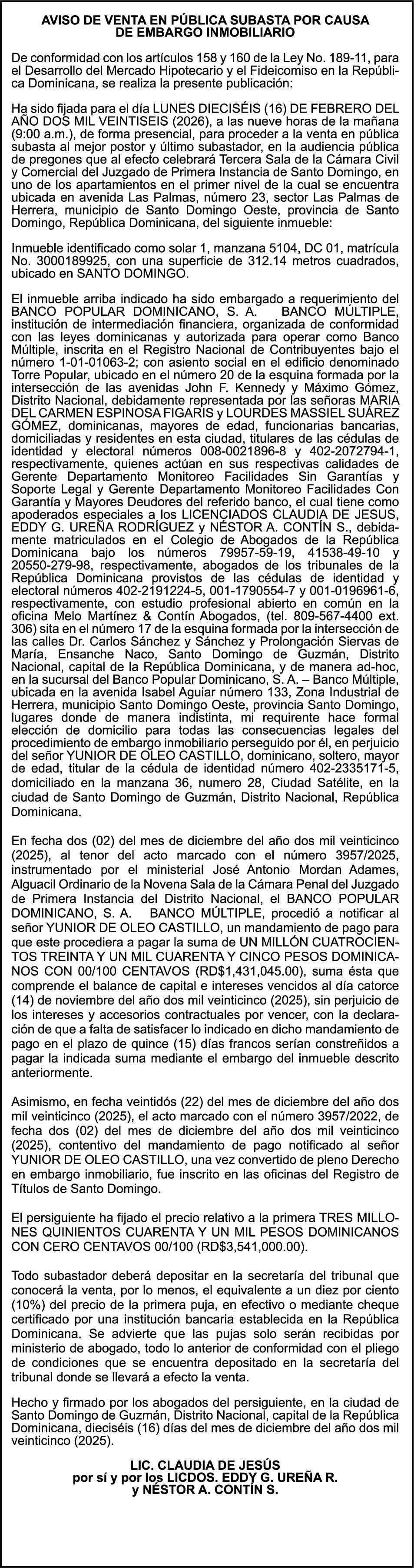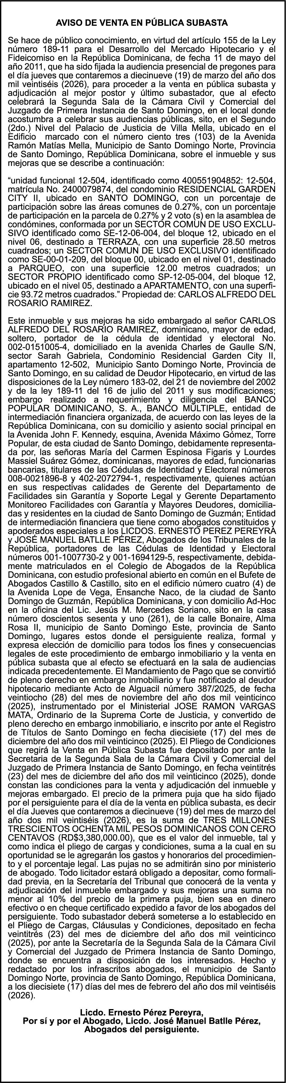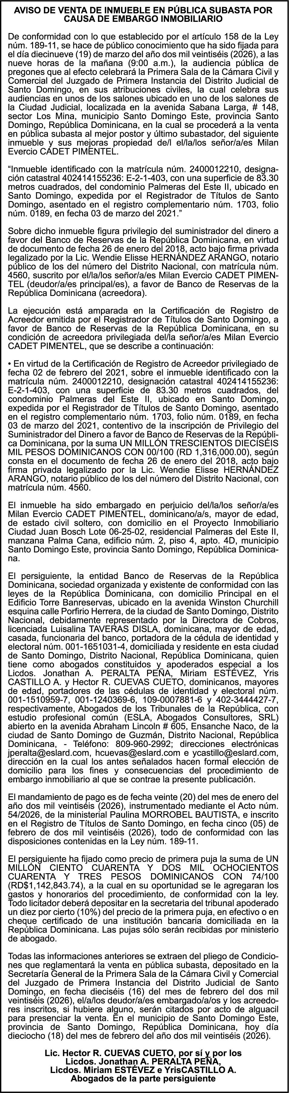 PERALTA SURIEL, Ced. 001-1403884-7.