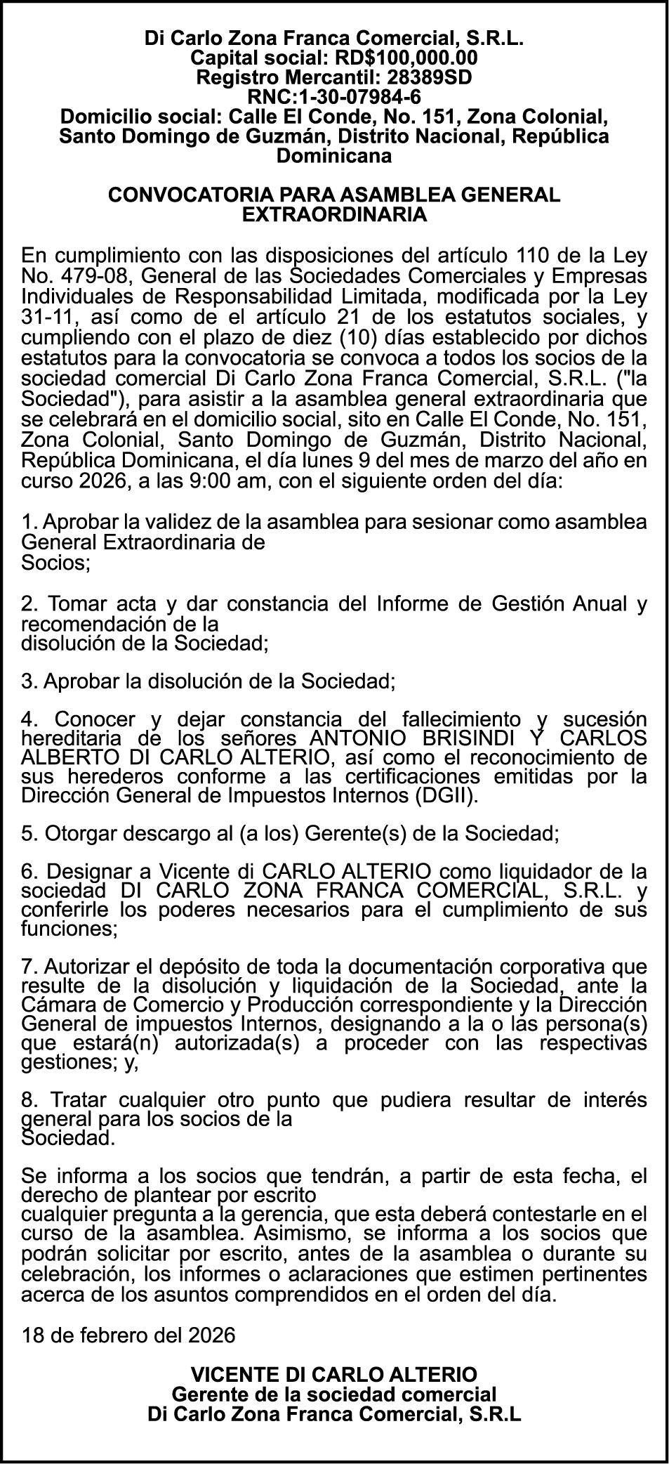 8:00 A.M. Conversatorio de la Cámara Minera de la República Dominicana (Camipe). Salón Lincoln, Hotel Kennedy.