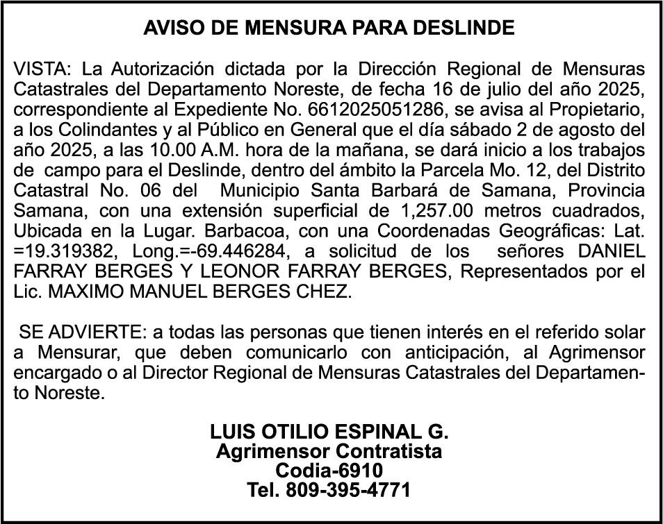 10:00 A.M. Fundación Padre Rogelio Cruz y campesinos de Samaná realizan piquete frente a la Procuraduría General de la República.