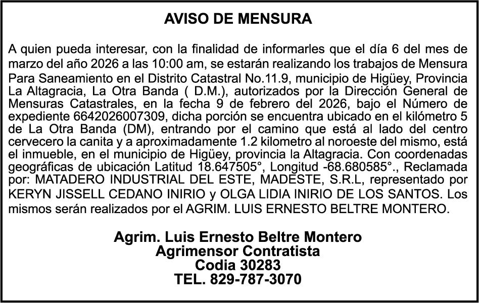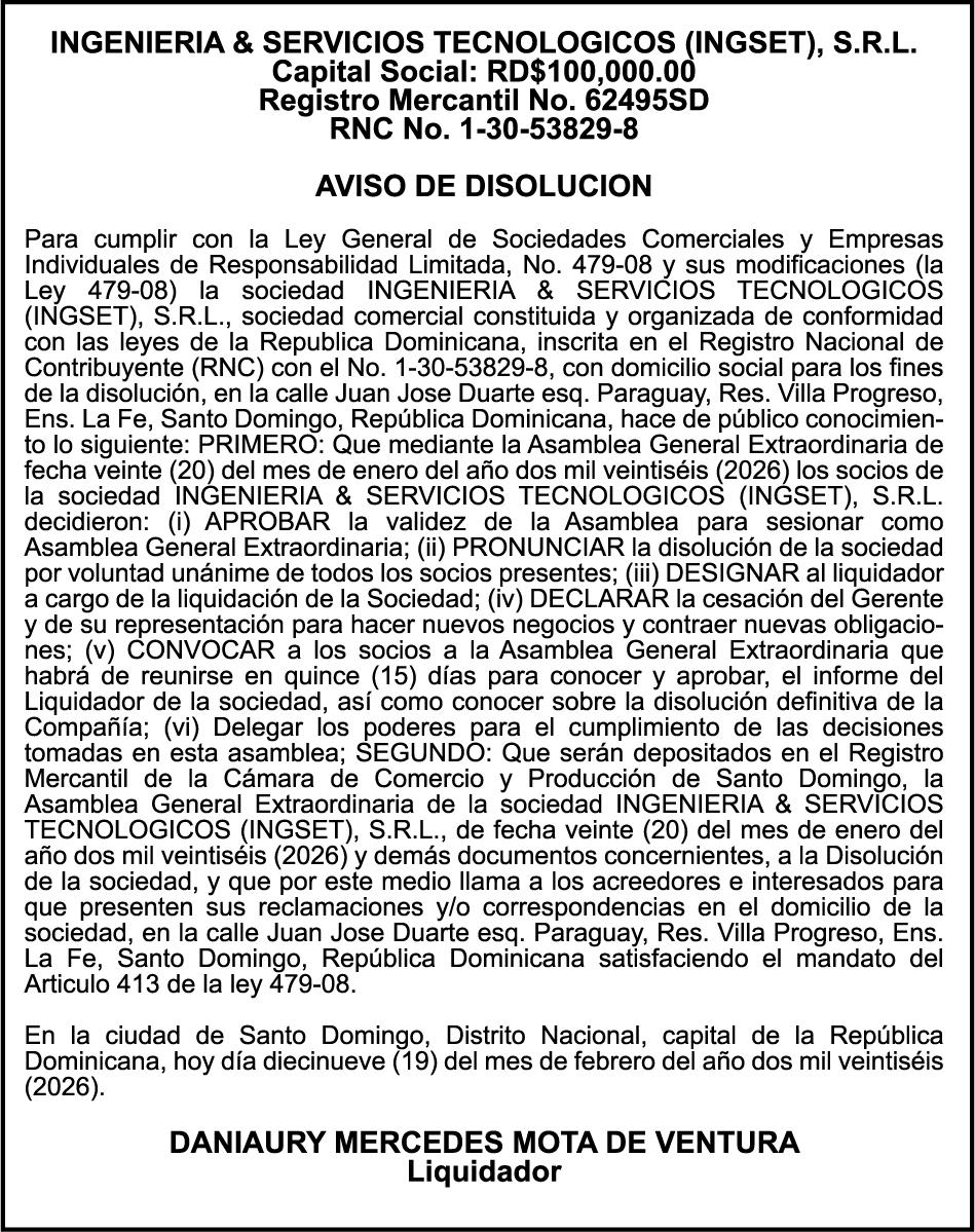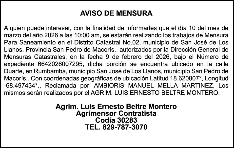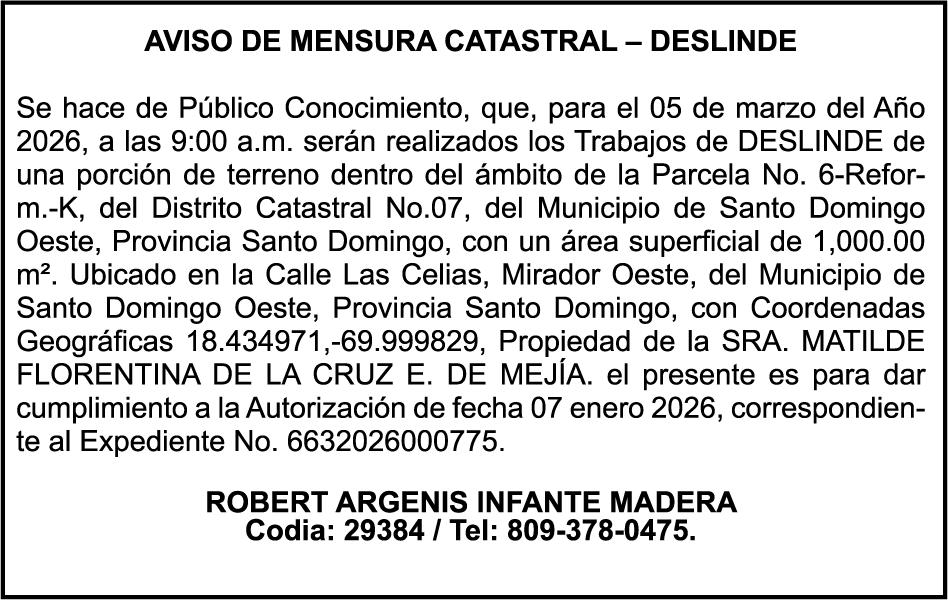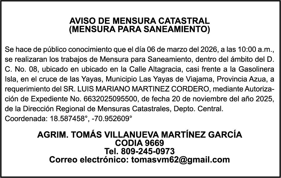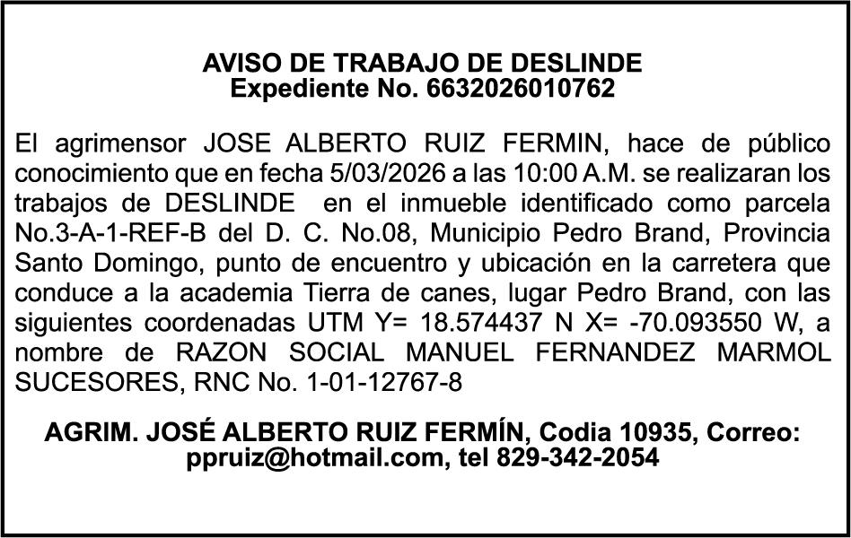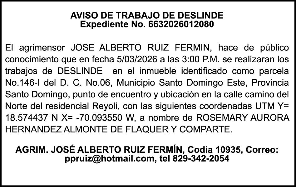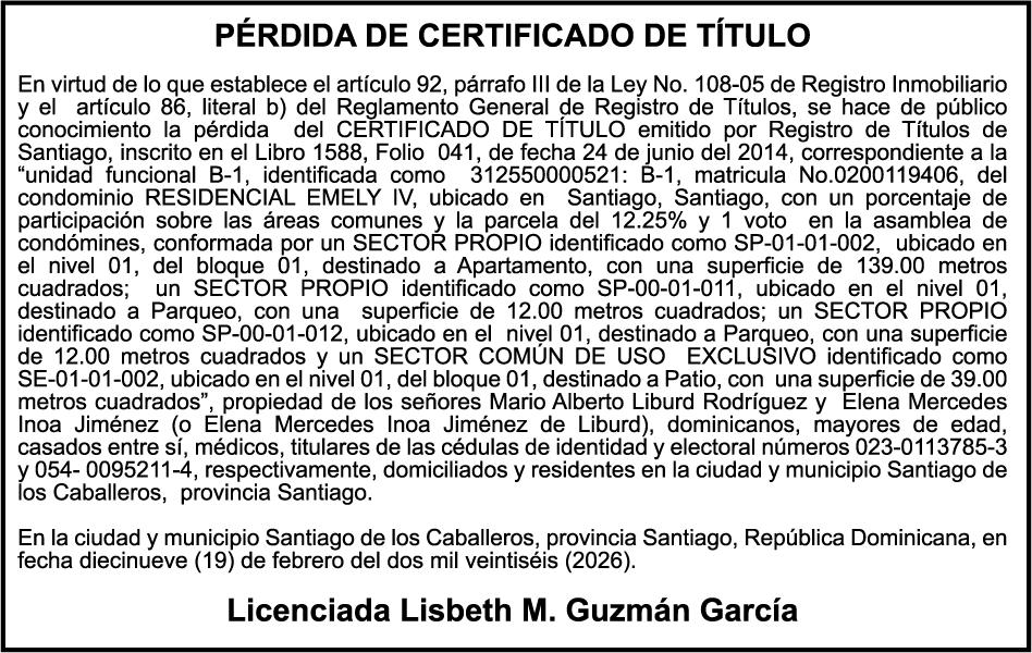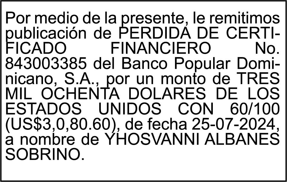 SE hace de público conocimiento la pérdida del Certificado Financiero número 853139483 emitido por Banco Popular Dominicano, S. A. Banco Múltiple, a nombre de JUNIOR ALCIDES VASQUEZ ALONZO, portador de la Cédula de Identidad y Electoral número 402-4477318-6, certificado número 853139483 expedido en fecha 3 de diciembre de 2025, por el monto de (RD$50,945.81) más intereses generados a la fecha.