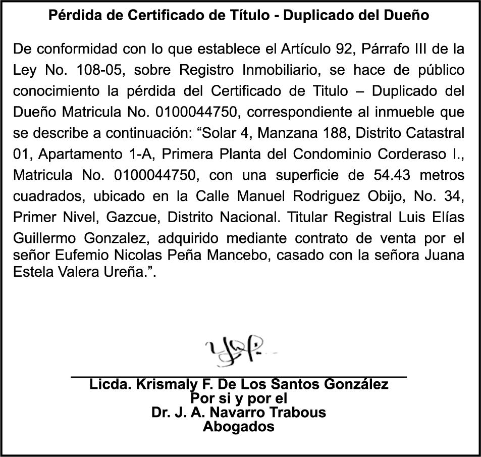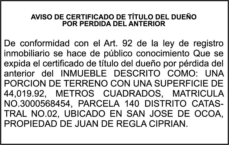 PERDIDA DE MATRICULA: Placa N517824,Chasis LF3PCK5068B002752, Marca X-1000,modelo CG-150,Color ROJO,Año 2008, a nombre de JOSE MAXIMILIANO ROSARIO,ced.032-0006432-1