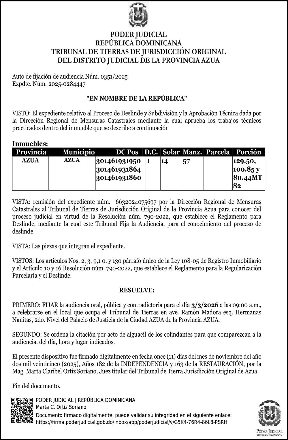 PERDIDA DE PLACA No. K1930970, de la motocicleta marca SUZUKI, Modelo AX100, año 2020, color AZUL, Chasis No. LC6PAGA16L0008065, a nombre de WILMOND MARDIGRAS