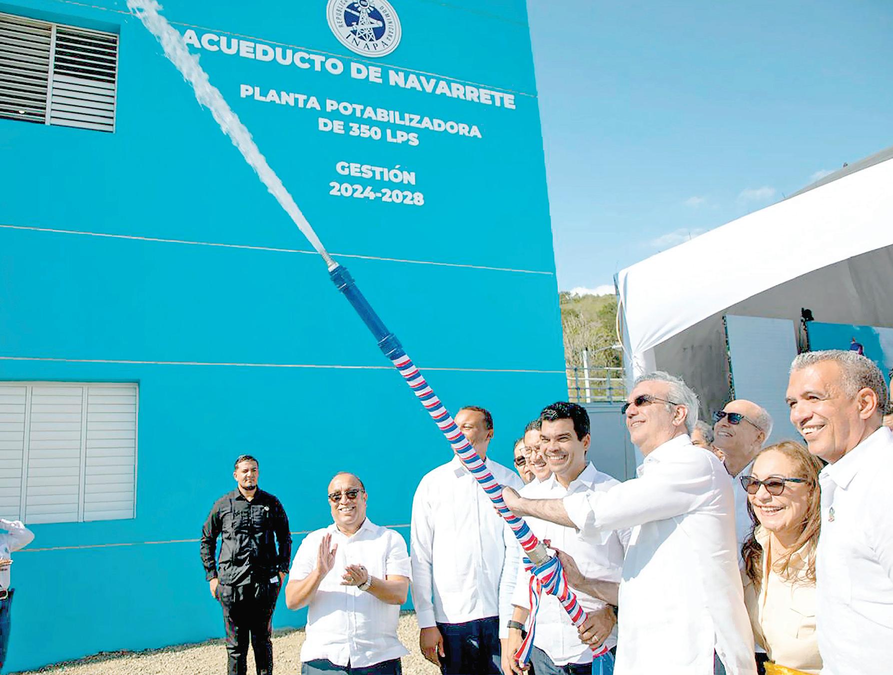 Santiago. El presidente Luis Abinader y el director ejecutivo del Instituto Nacional de Aguas Potables y Alcantarillados, Wellington Arnaud, inauguraron ayer el sistema de agua potable moderno que beneficiará a más de 150 mil habitantes.
