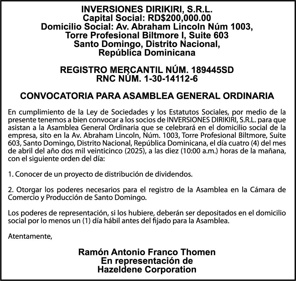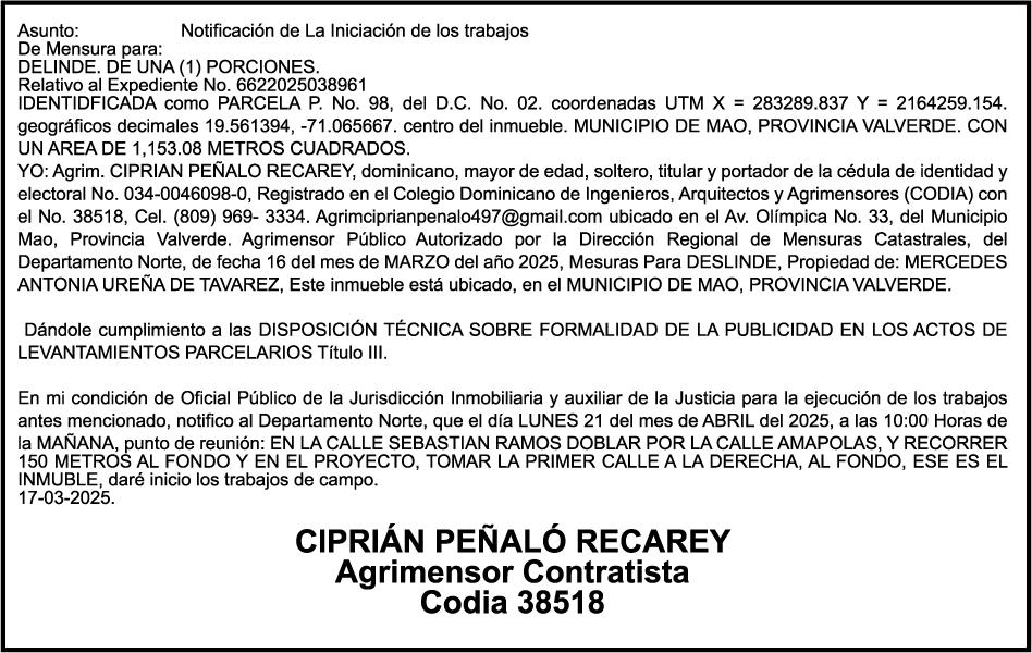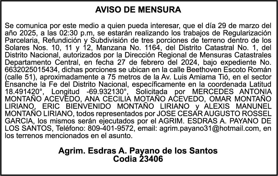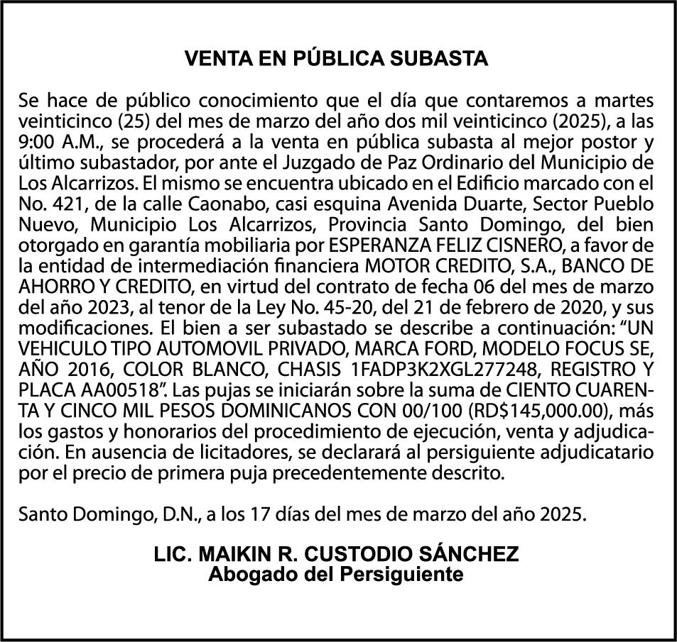 SE hace de público conocimiento la pérdida del Certificado Financiero número 842707606 emitido por Banco Popular Dominicano, S. A. Banco Múltiple, a nombre de AMANCIA CASTILLO, portadora de la Cédula de Identidad y Electoral número 023-0041971-6, certificado número 842707606 expedido en fecha 12 de julio de 2024 por el monto de (RD$2,613,807.37) más intereses generados a la fecha.