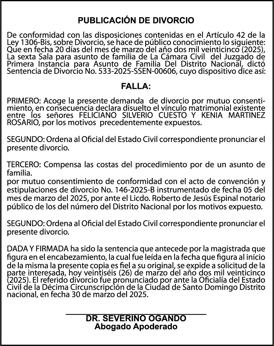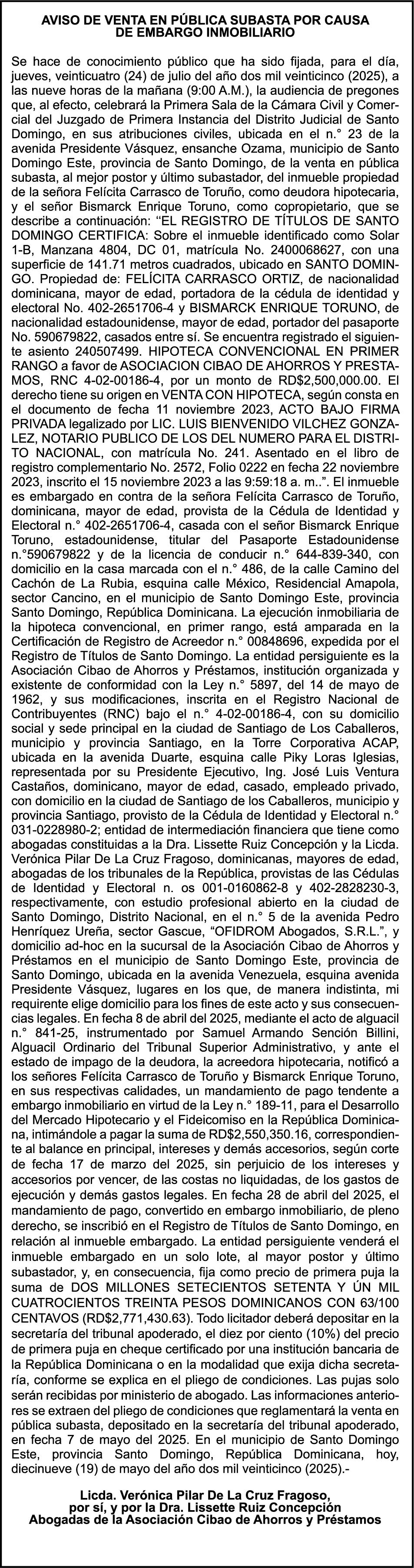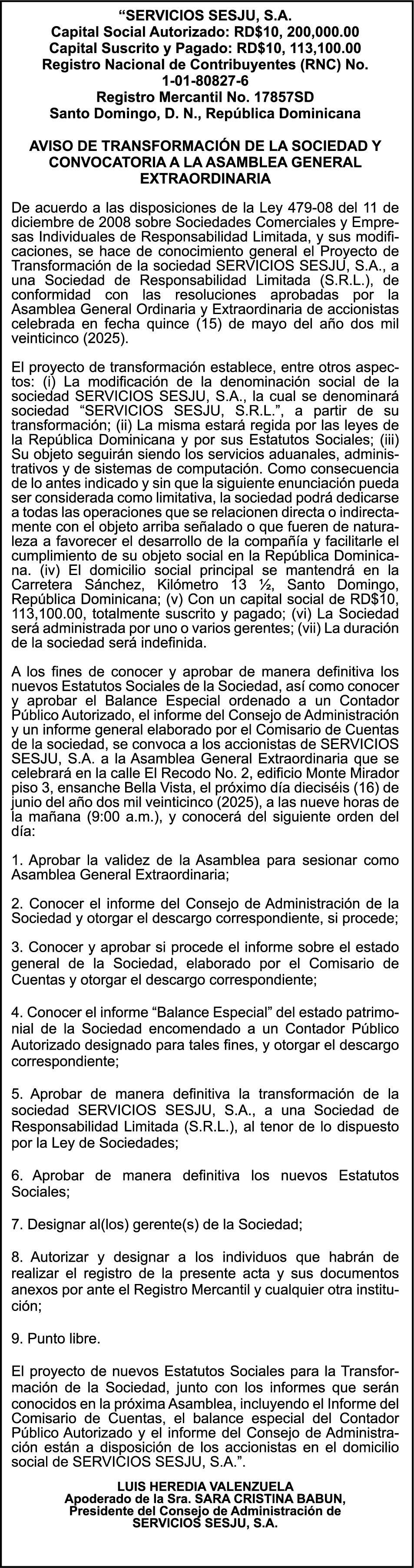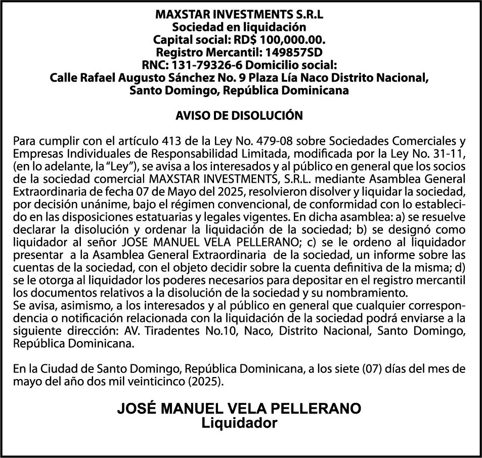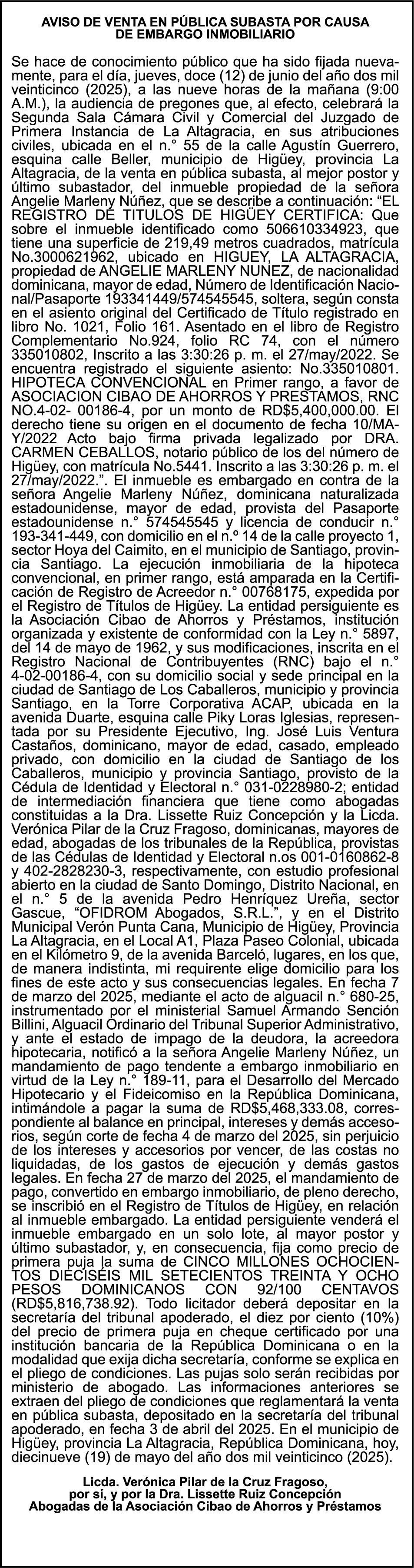 AVISO TRASPASO El señor. OCTAVIO DE JESUS MARTINEZ CRUZ, traspasa el la yola de pesca “RAQUEL-II”, matricula No. YP-R13-333PP, de 17.6 pies de eslora, color Rojo, al señor RAMON GARCIA ACOSTA, como nuevo propietario.