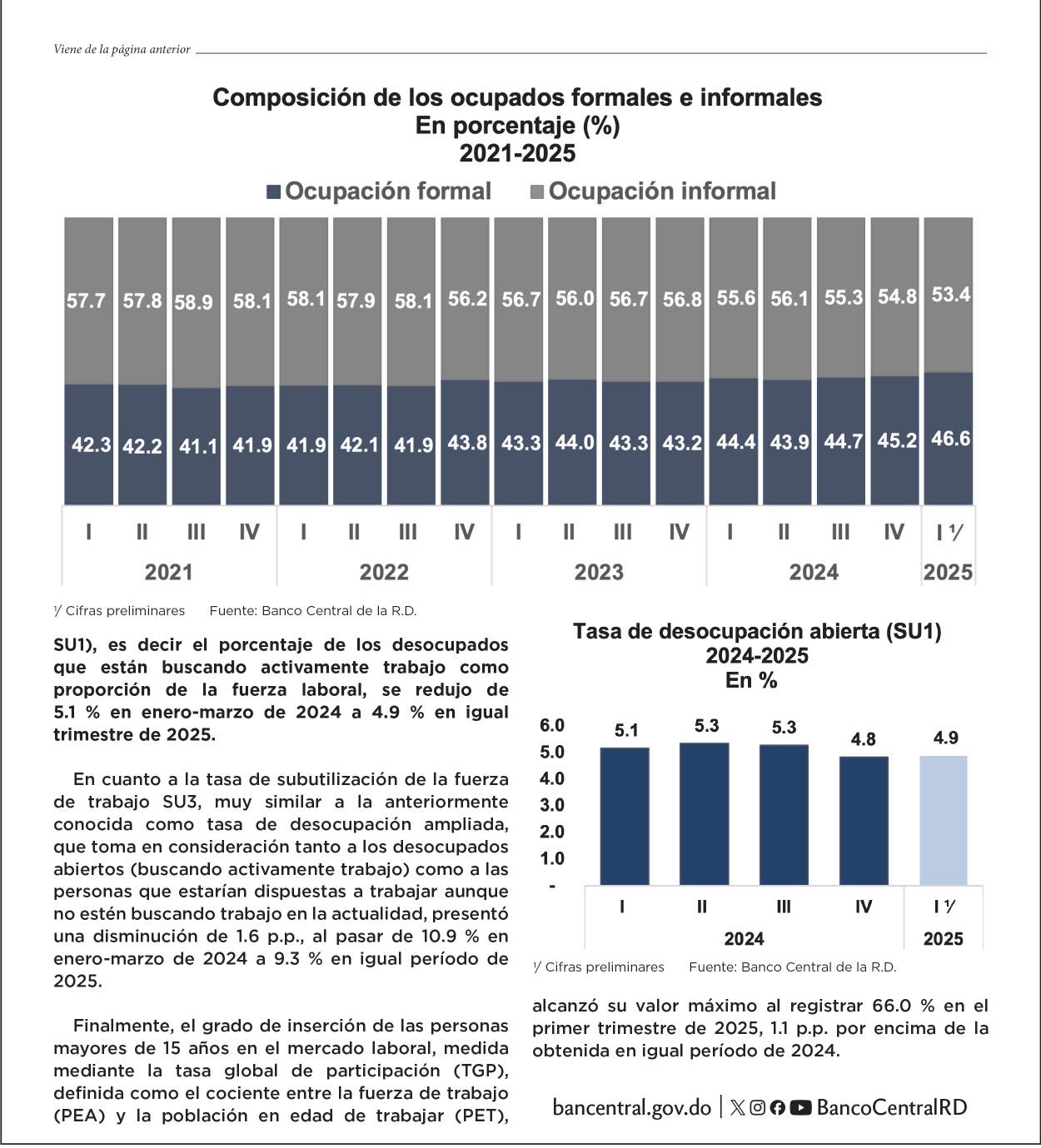 Informe. Indica que el total de ocupados, entre formales e informales, se ubicó en 5,117,548. P.16