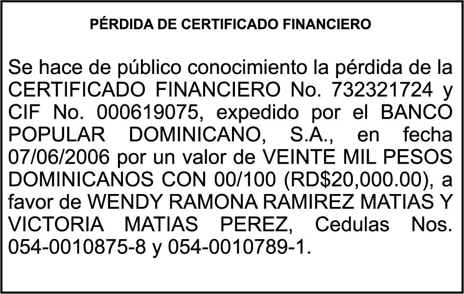 PERDIDA DE PLACA No.