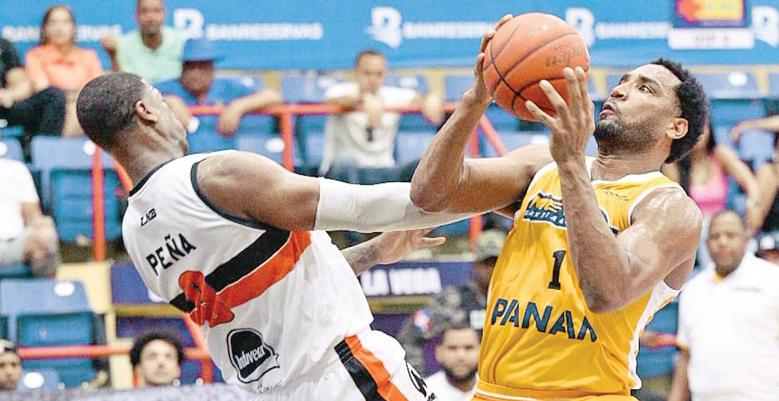 Acción del juego de ayer entre Metros y Reales en el techado Fernando Teruel en La Vega. FE