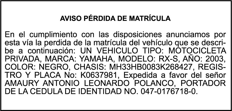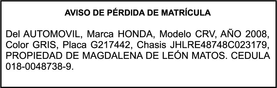 PERDIDA DE MATRICULA