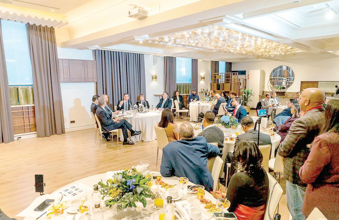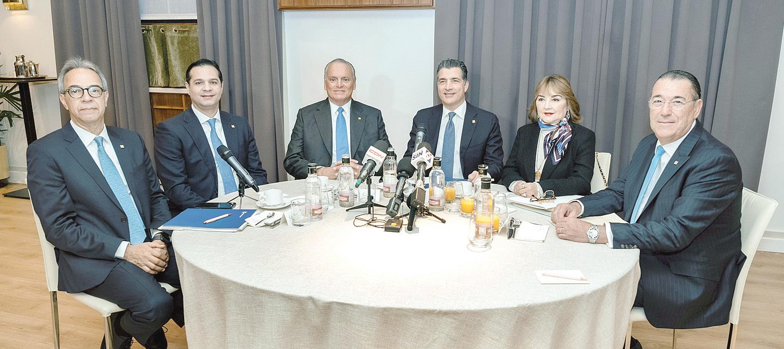 De izquierda a derecha, José Mármol, Robinson Bou, Luis E. Espínola, Christopher Paniagua, Antonia Antón de Hernández y Juan Manuel Martín de Oliva, durante el encuentro con la prensa en la víspera del inicio de la Feria Internacional de Turismo (Fitur) 2026 en Madrid. P.16-17