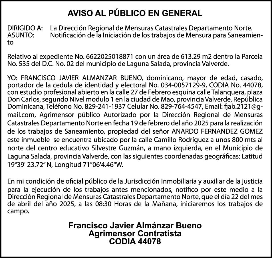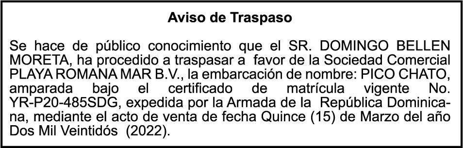 SE hace de público conocimiento la pérdida del Certificado Financiero número 842707606 emitido por Banco Popular Dominicano, S. A. Banco Múltiple, a nombre de AMANCIA CASTILLO, portadora de la Cédula de Identidad y Electoral número 023-0041971-6, certificado número 842707606 expedido en fecha 12 de julio de 2024 por el monto de (RD$2,613,807.37) más intereses generados a la fecha.