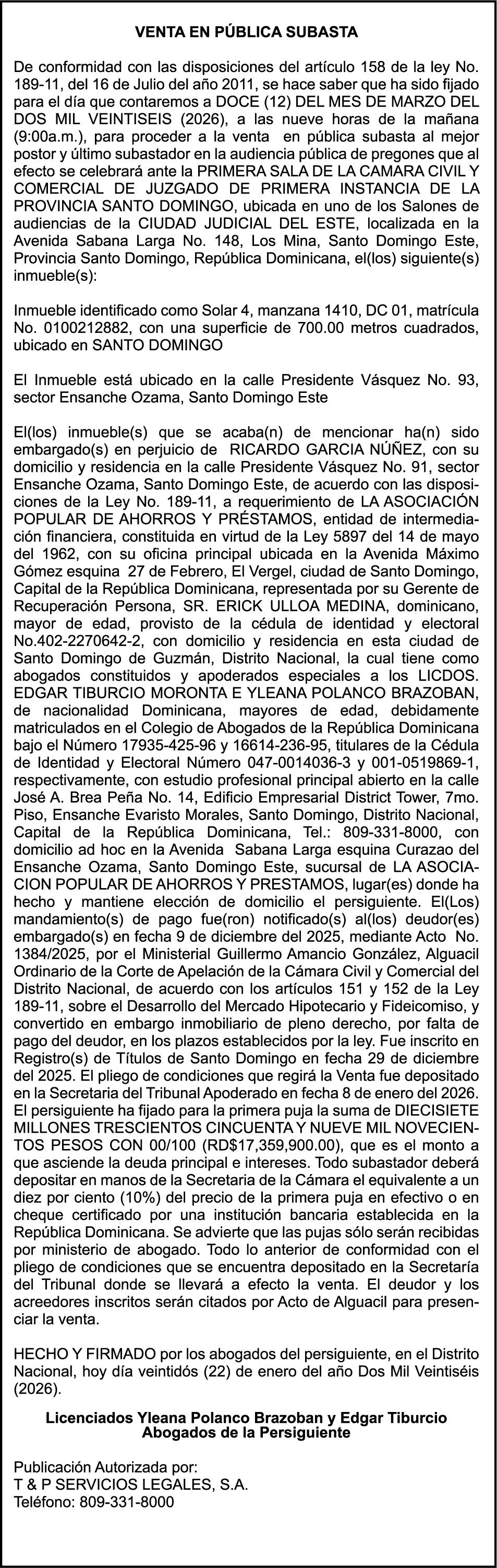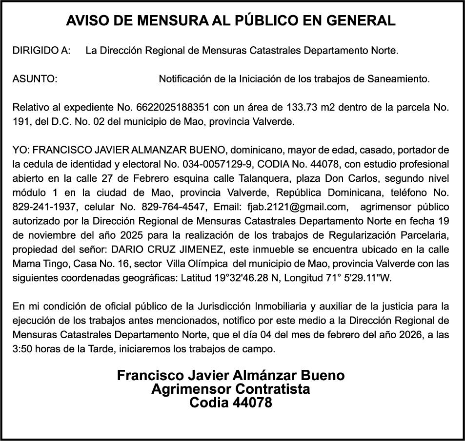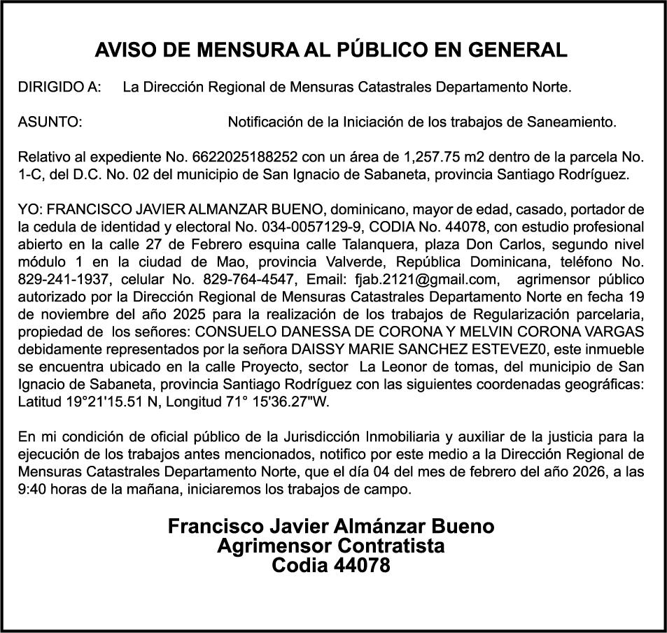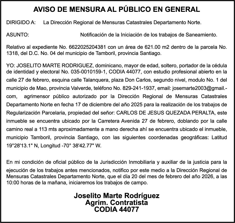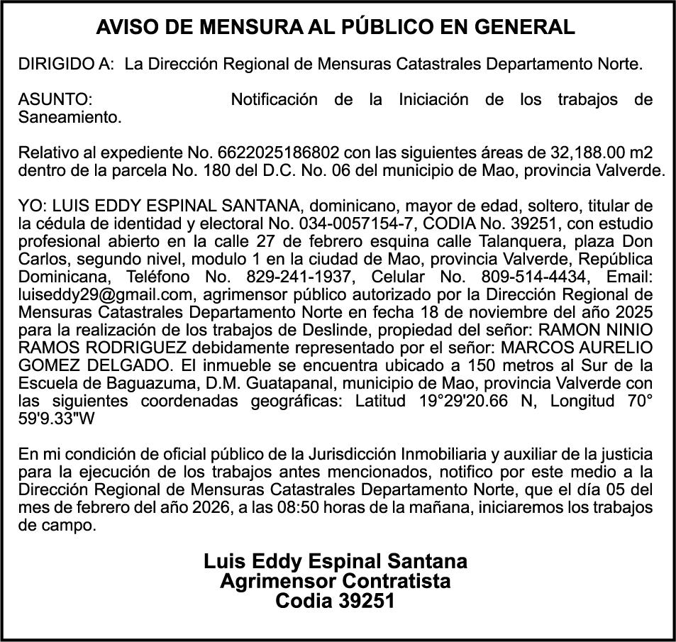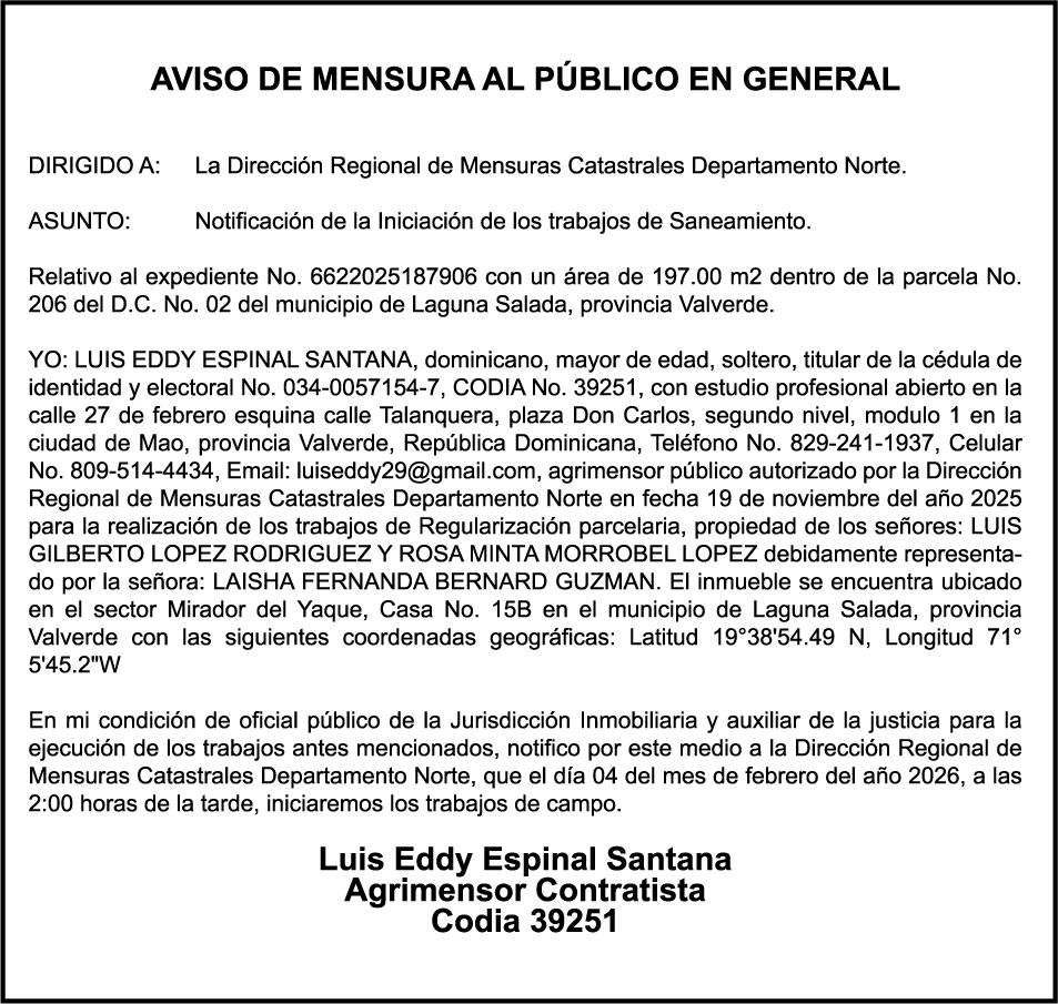 SE hace de público conocimiento la pérdida del Certificado Financiero número 839726171 emitido por Banco Popular Dominicano, S. A. Banco Múltiple, a nombre de DIOGENES PORTE DIAZ, portador de la Cédula de Identidad y Electoral número 001-1279428-4, certificado número 839726171 expedido en fecha 4 de marzo de 2024, por el monto de (RD$251,404.68) más intereses generados a la fecha.