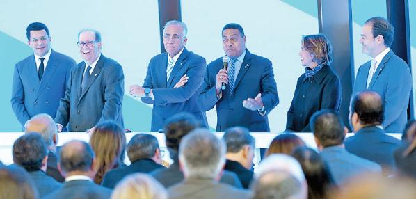 Ministro Collado inaugura el stand dominicano acompañado de empresarios, banqueros y otros actores del sector. P.19