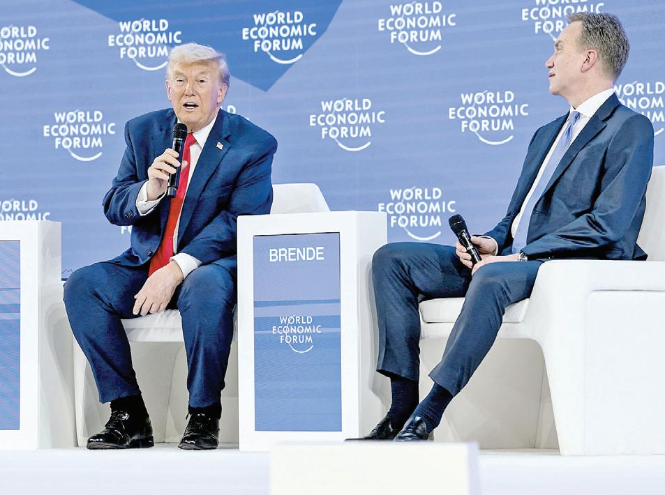 El presidente de Estados Unidos, Donald Trump, habla durante un panel con el noruego Borge Brende, presidente y CEO del 56 Foro Económico Mundial.