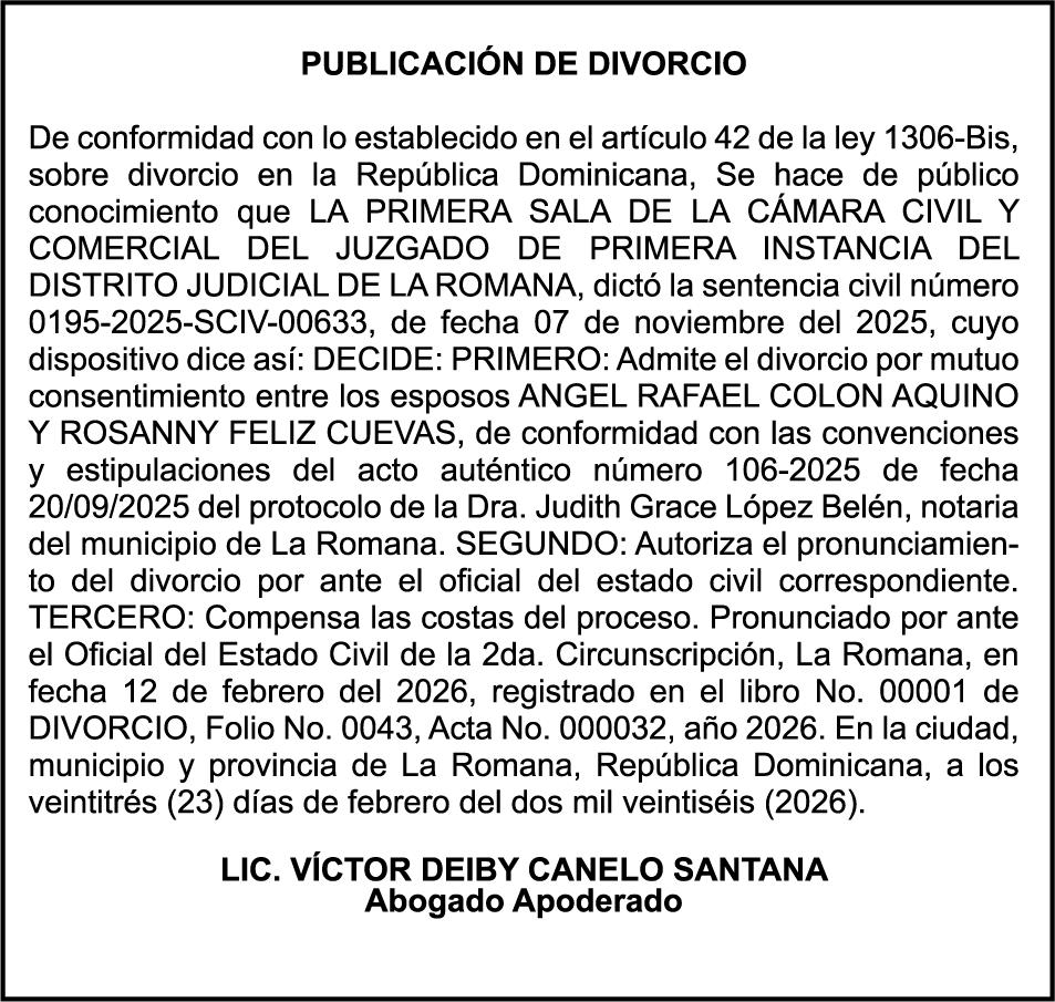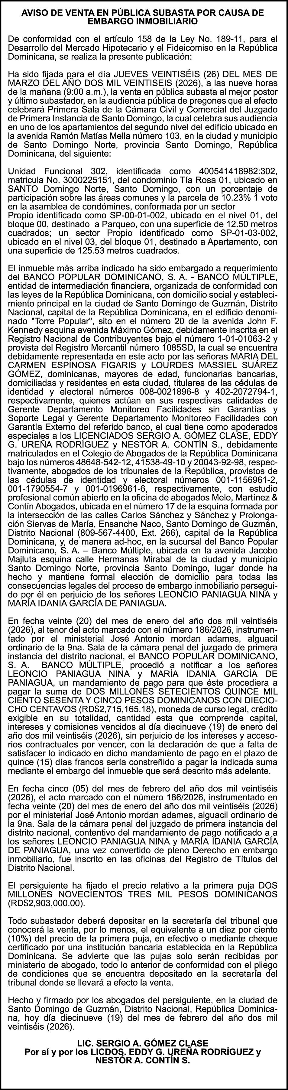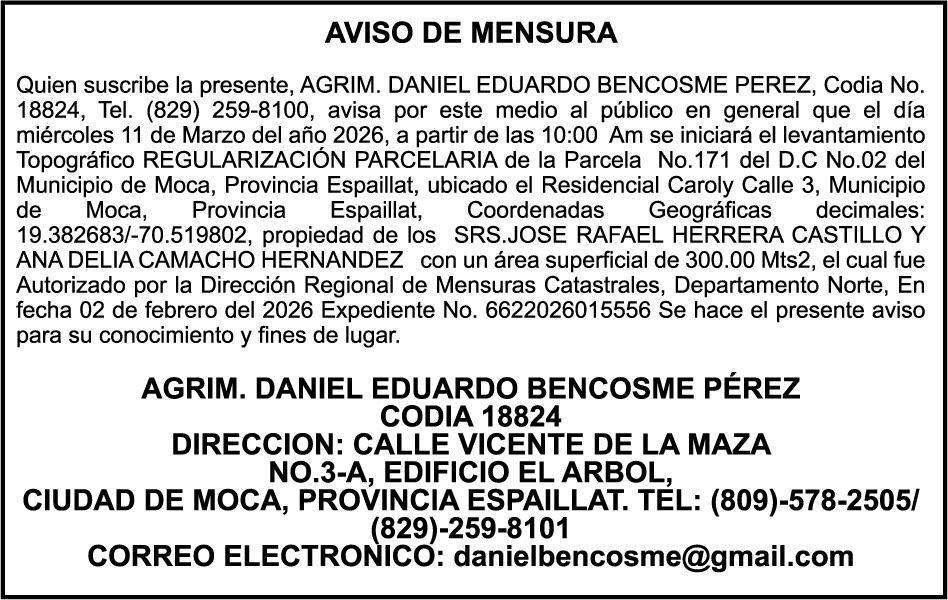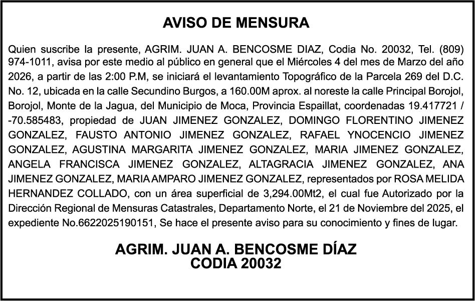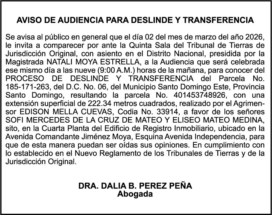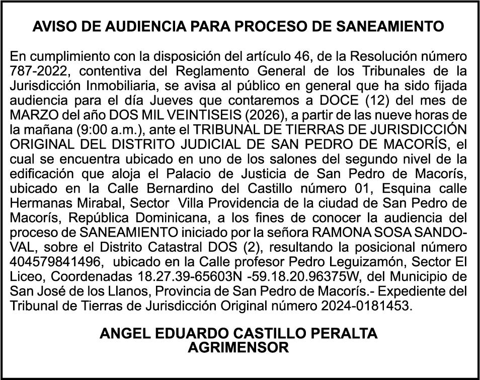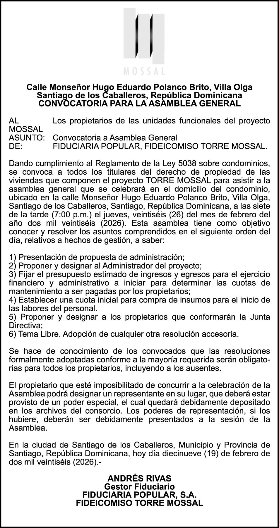 SE hace de público conocimiento la pérdida del Certificado Financiero número 842480444 emitido por Banco Popular Dominicano, S. A. Banco Múltiple, a nombre de QUINTINO VIZCAINO, portador de la Cédula de Identidad y Electoral número 023-0014117-9, certificado número 842480444 expedido el 2 de julio de 2024 por el monto de (RD$20,000,000.00) más intereses generados a la fecha.