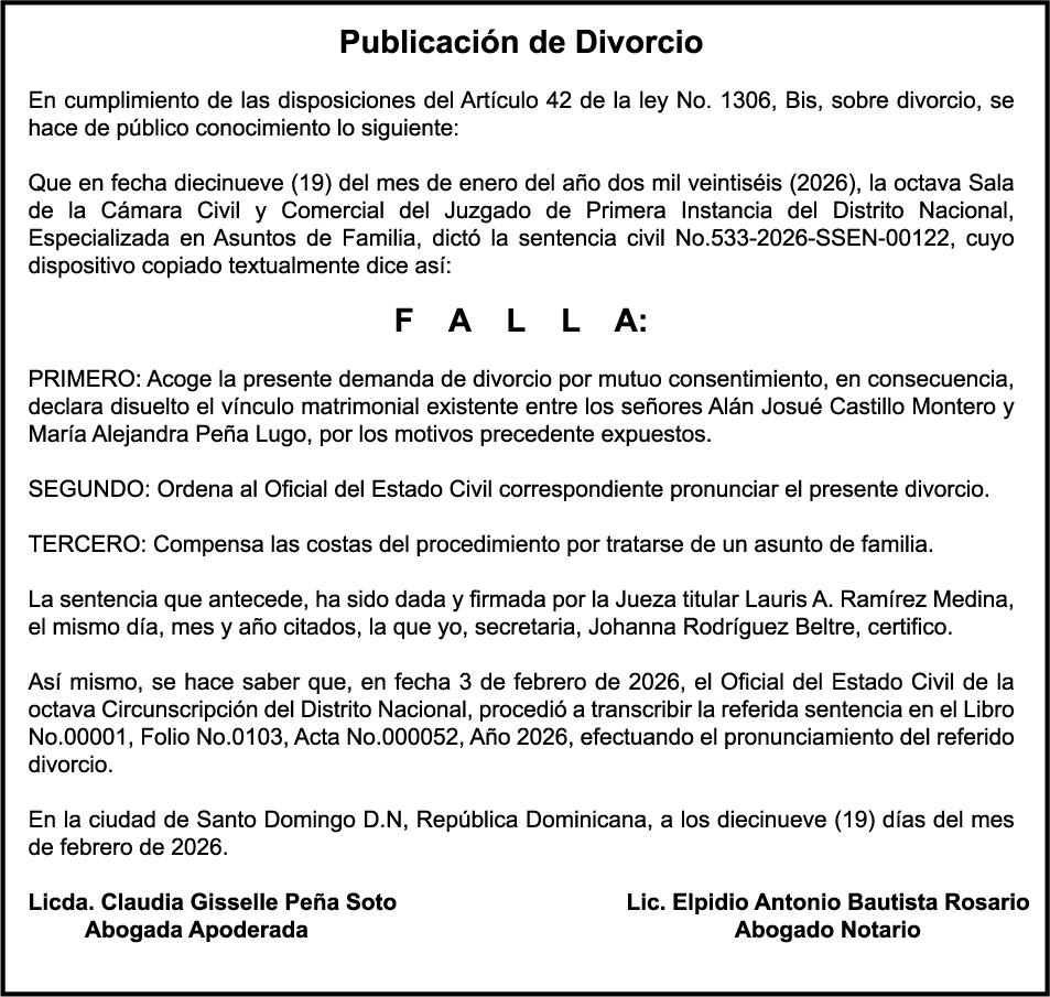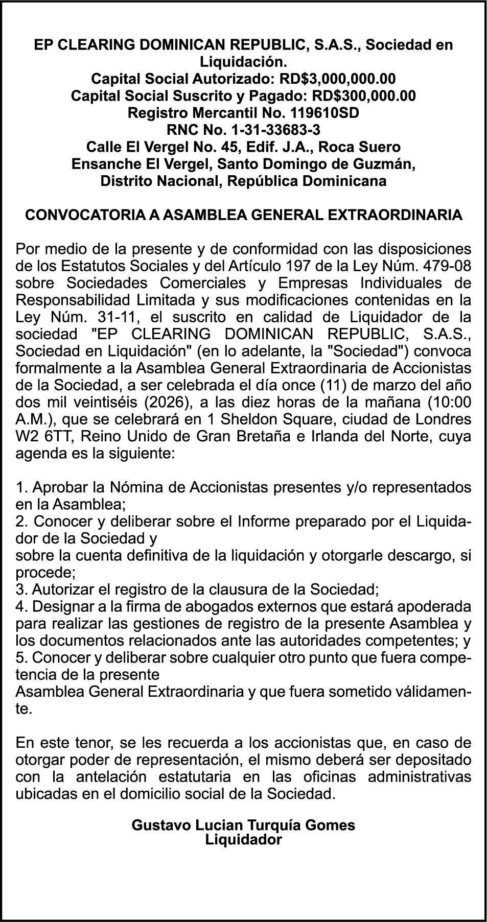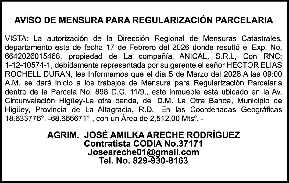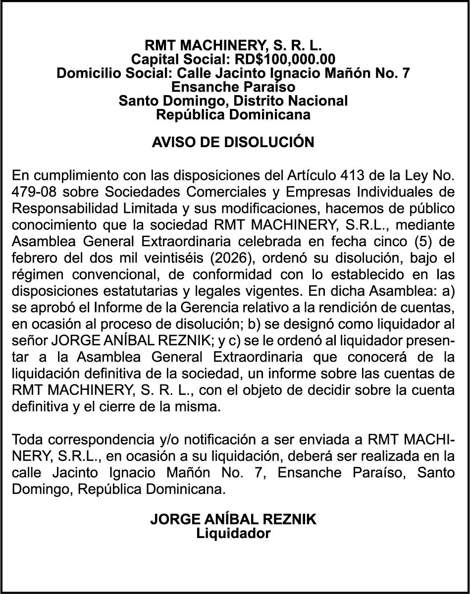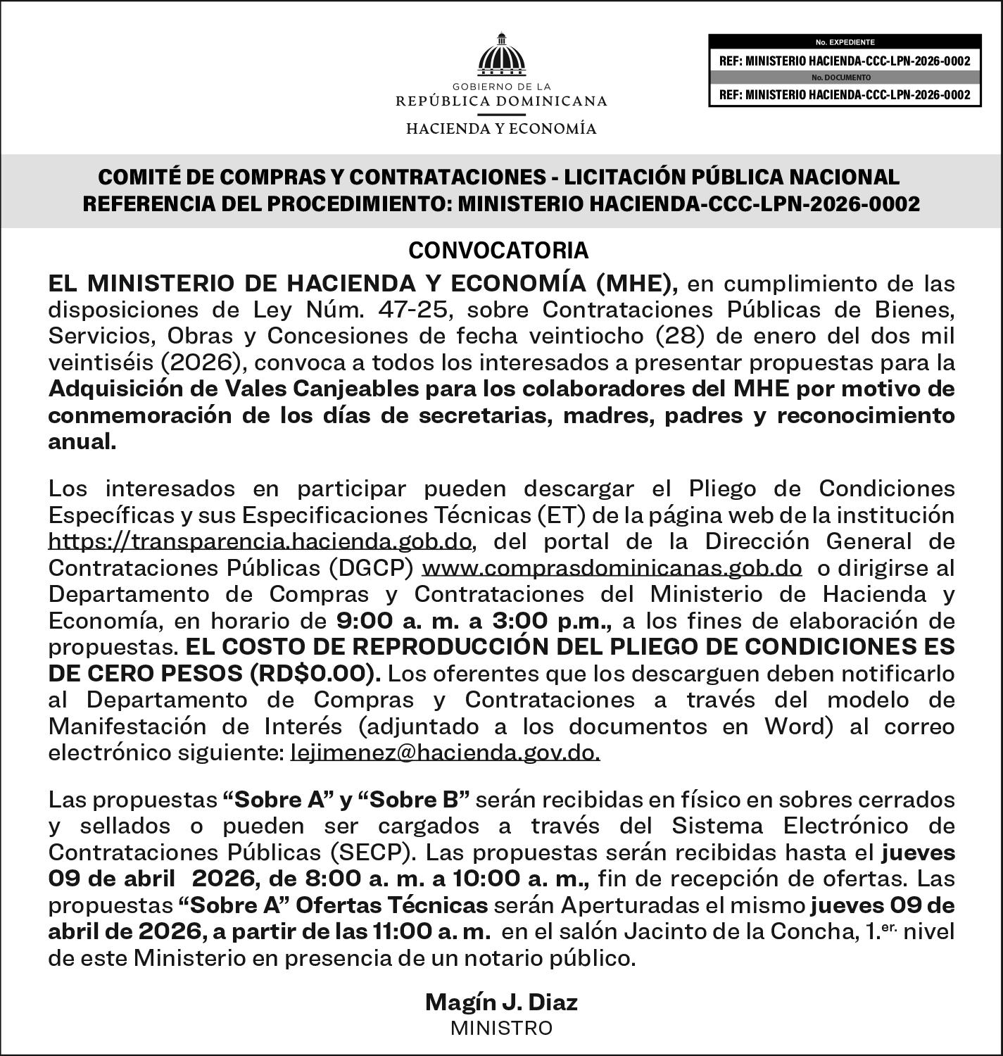 SE hace de público conocimiento la pérdida del Certificado Financiero número 842480444 emitido por Banco Popular Dominicano, S. A. Banco Múltiple, a nombre de QUINTINO VIZCAINO, portador de la Cédula de Identidad y Electoral número 023-0014117-9, certificado número 842480444 expedido el 2 de julio de 2024 por el monto de (RD$20,000,000.00) más intereses generados a la fecha.