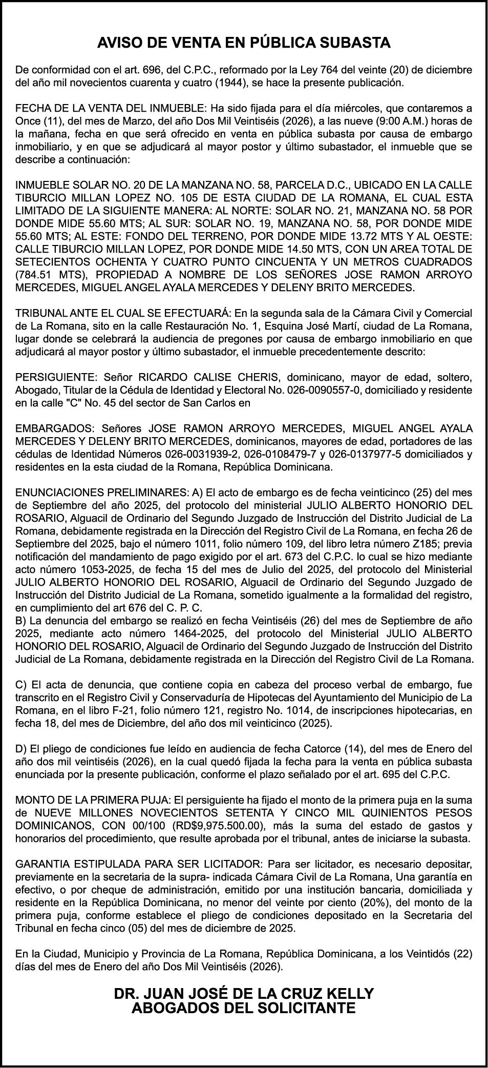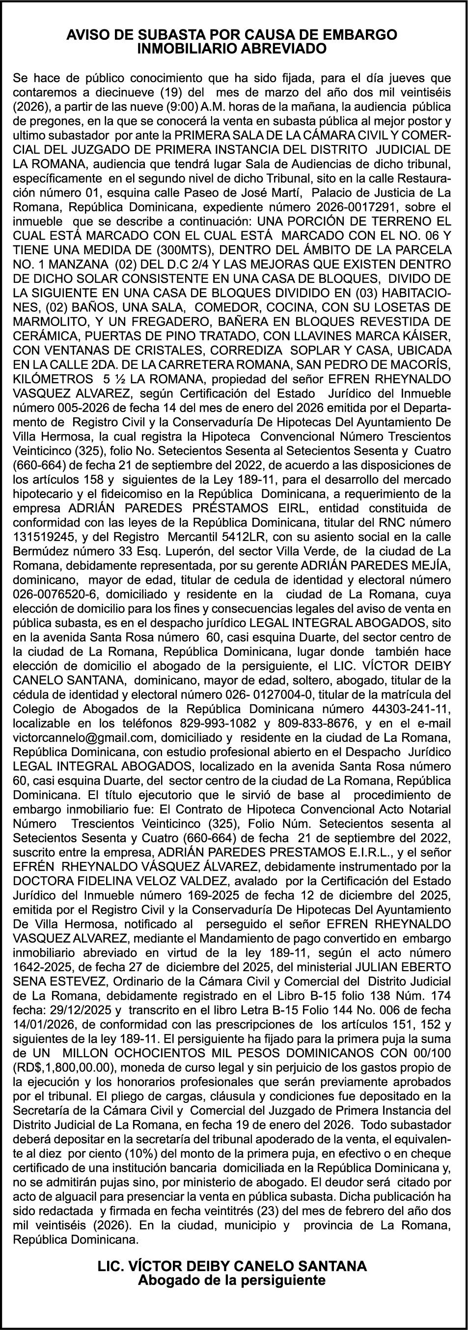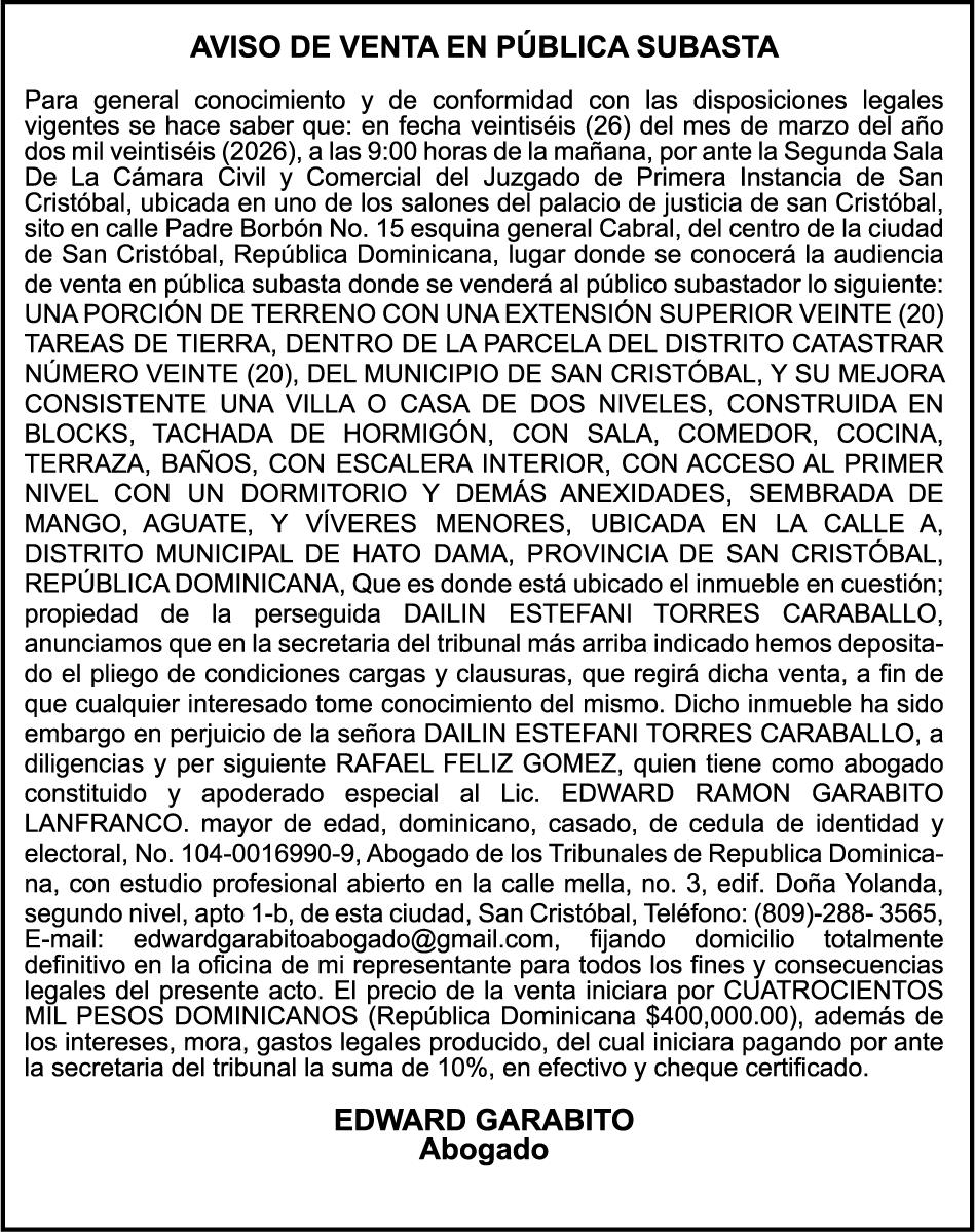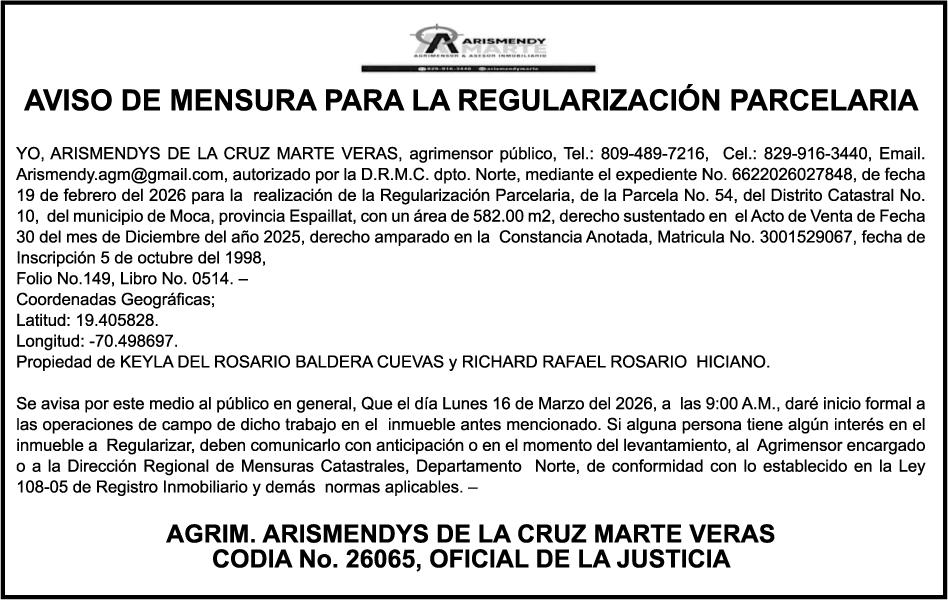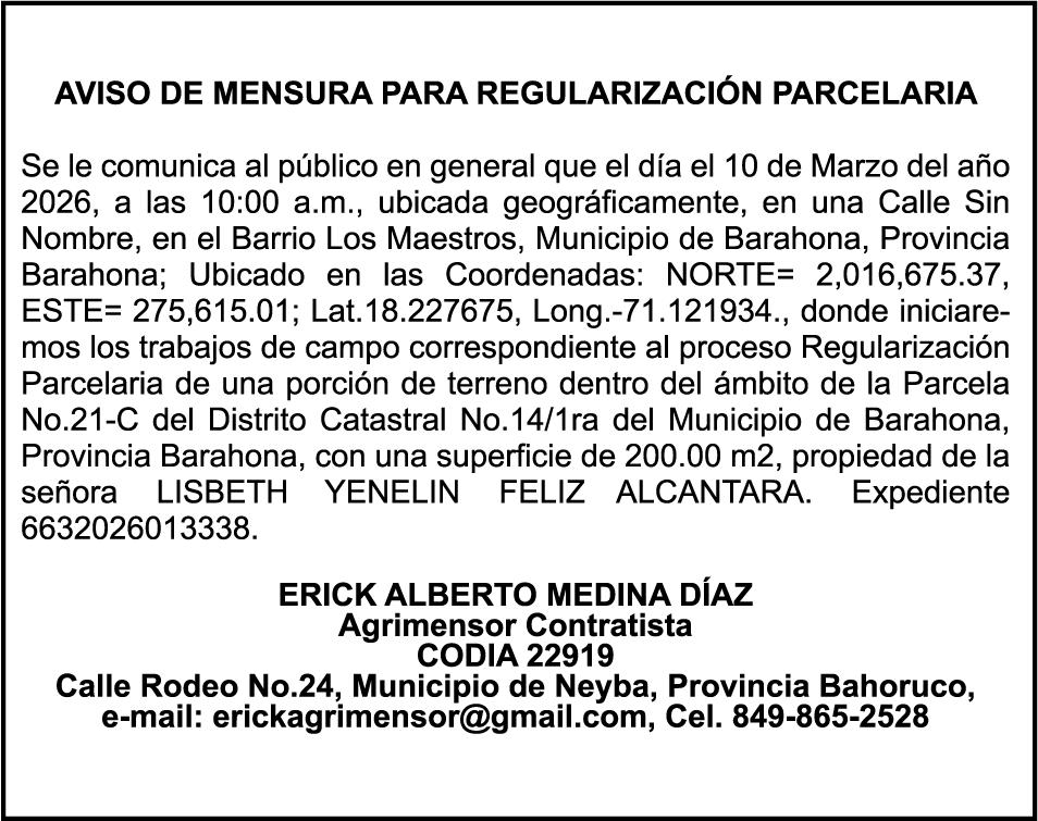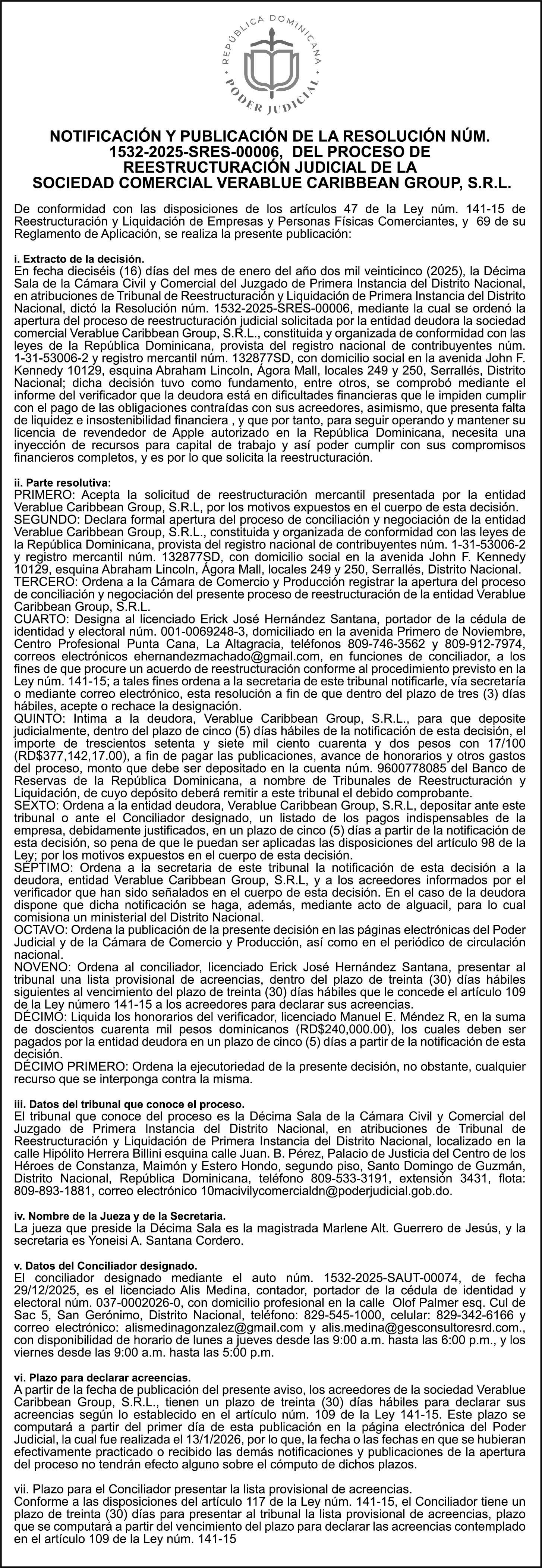 SE hace de público conocimiento la pérdida del Certificado Financiero número 842480444 emitido por Banco Popular Dominicano, S. A. Banco Múltiple, a nombre de QUINTINO VIZCAINO, portador de la Cédula de Identidad y Electoral número 023-0014117-9, certificado número 842480444 expedido el 2 de julio de 2024 por el monto de (RD$20,000,000.00) más intereses generados a la fecha.