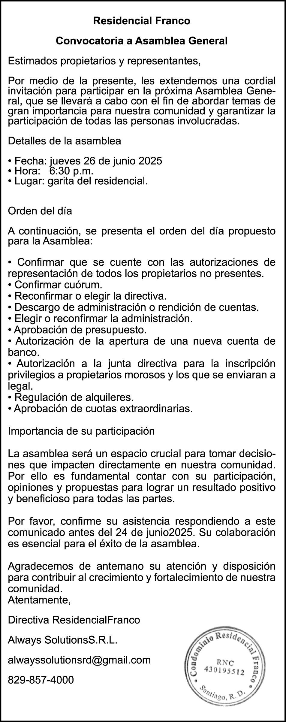 PERDIDA DE PLACA: NO. N9027629, CHASIS: F4VP451797, MARCA: YAMAHA, MODELO: 4VP, AÑO: 1998, COLOR: NEGRO, Nombre: DILENIA DE JESUS REYES PERALTA DE TORRES, CEDULA: 402-0008628-0