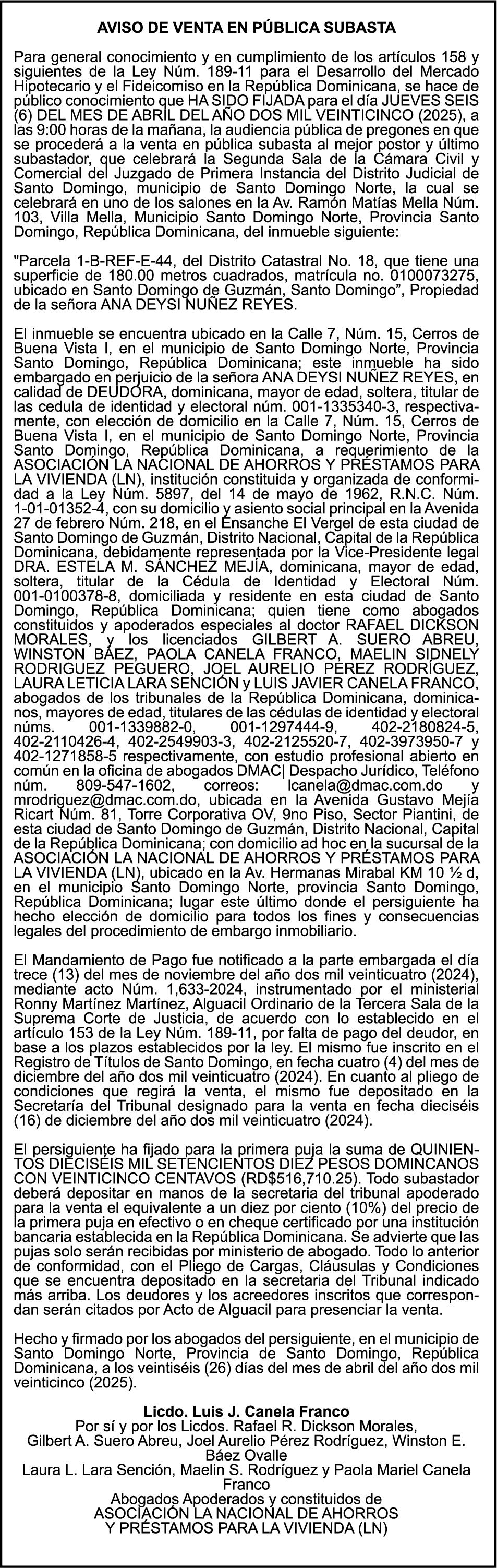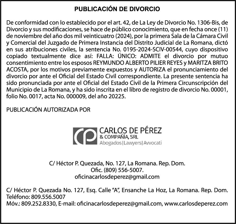 PERDIDA DE MATRICULA: Del Automovil, Placa A194642, Chasis 2TIAE94A1MC062144, Marca TOYOTA, Modelo COROLLA, Color ROJO, AÑO 1991, a nombre de CLAUDIA TAVERAS RODRIGUEZ, Ced. 00104975321 PERDIDA Certificado de Titulo, con la matricula No. 100007559 correspondiente al apartamento 2ª, con un área de 100m2, del residencial virgilio, dentro del inmueble parcela 419-F del DC 10-6ta, de Higuey, a nombre de CIRILA AVILA JIMENEZ