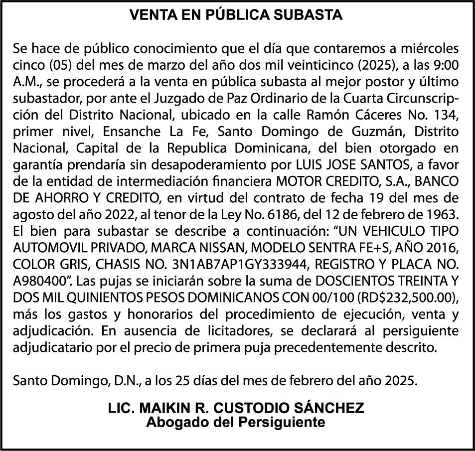 PERDIDA DE PLACA No. A726948, Automovil Privado HYUNDAI, Modelo SONATA N20, Color BLANCO, Año 2011, Chasis KMHEU41MBBA798252, a nombre de JULIO CESAR SANTA MARIA DE DIOS. PERDIDA DE PLACA No., A955068, del vehículo marca SUZUKI Modelo SWIFT, año 2016, color NEGRO, Chasis No. ZC72S368173, a nombre de CLOWESKY LINO JOSEPH