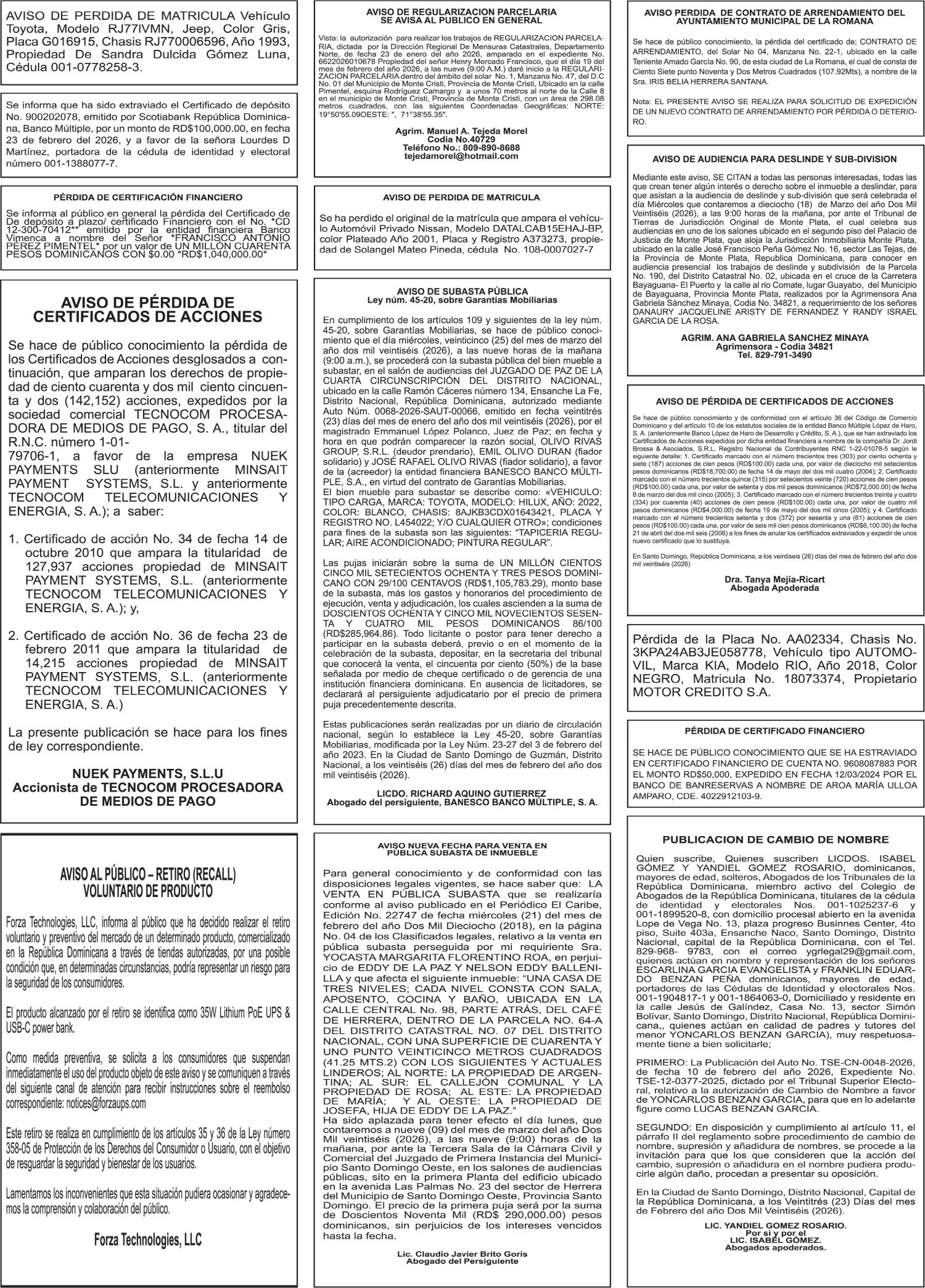 PERDIDA de Pergamino de Carta de Ruta, de la ruta No. 28, la cuál se extravió en poder del Sr. HECTOR ORTIZ, en la Romana, R.D. en fecha 15/12/2025, a nombre de HECTOR ORTIZ, Ced. No. 026-0049984-8, expedida por SITRAUR