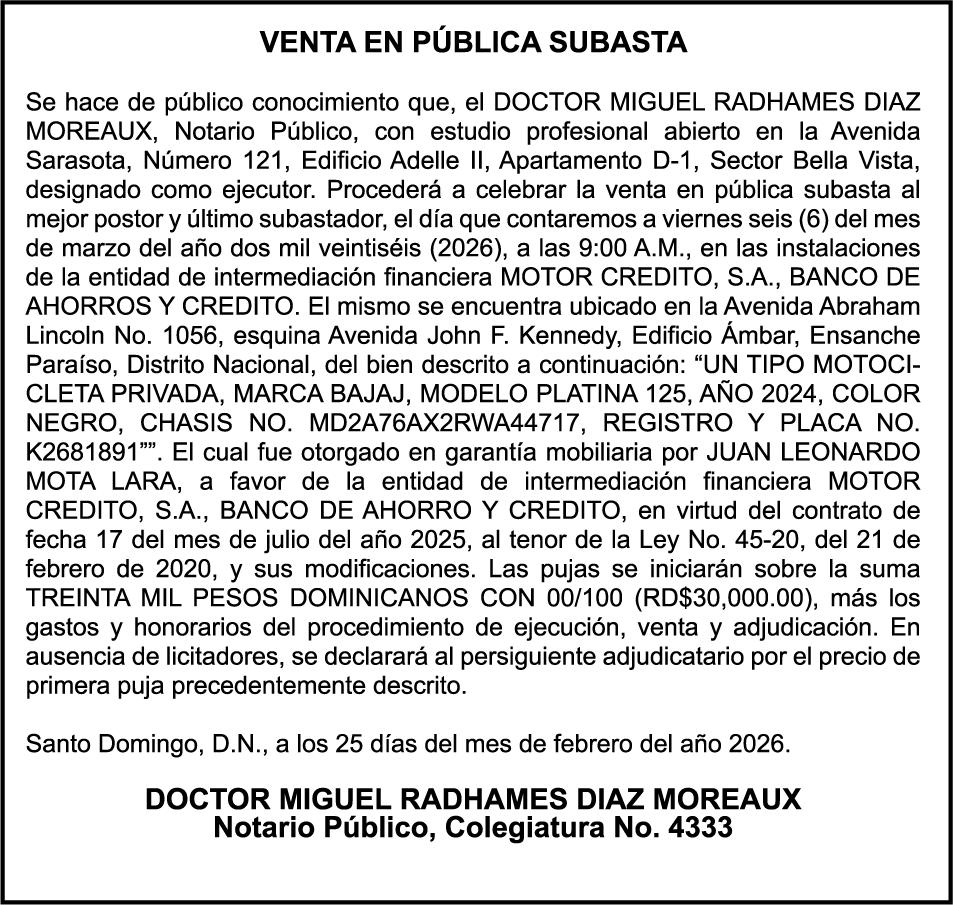PERDIDA DE CHAPA No. K2685406, MOTOCICLETA BAJAJ, color negro, año 2025, chasis MD2A76AX1SWE47092, a nombre de ENDERLIS DE LA CRUZ BRITO