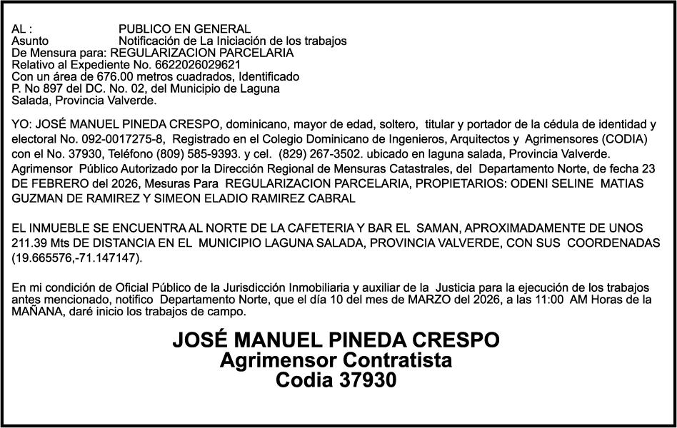 10:00 A.M. Acto de inicio de operaciones del 911 en Constanza y Jima Abajo, provincia La Vega. Multiuso de Constanza.