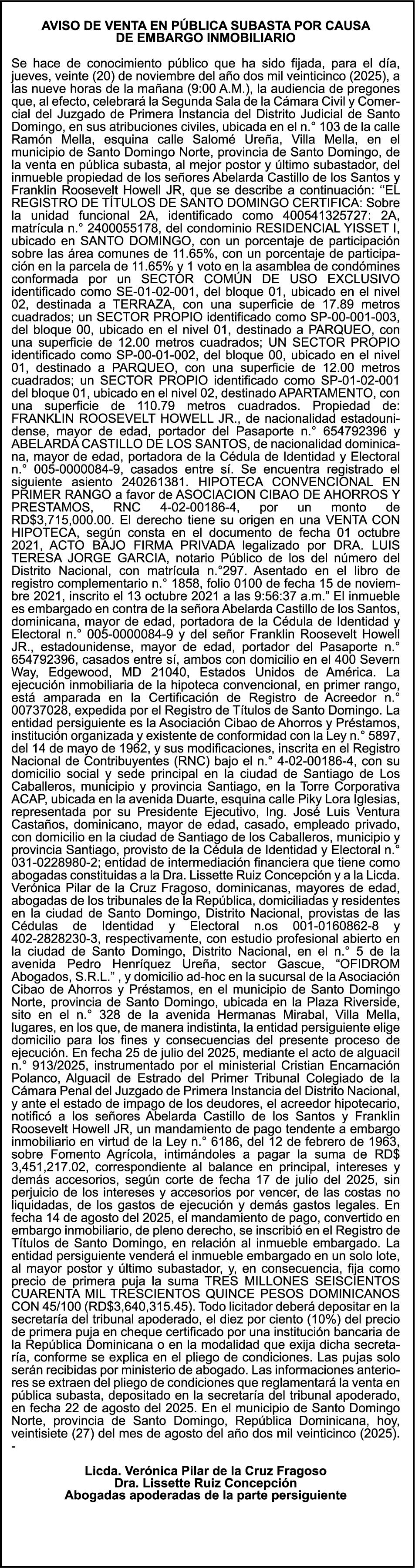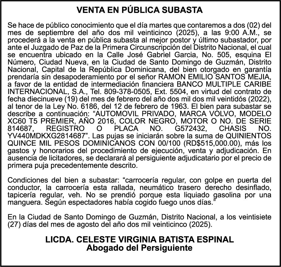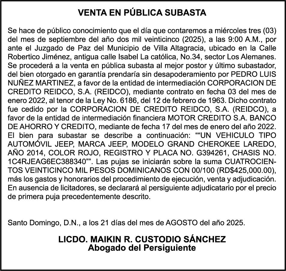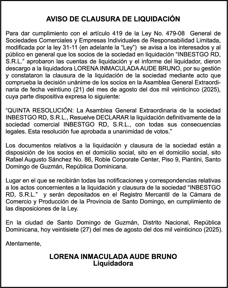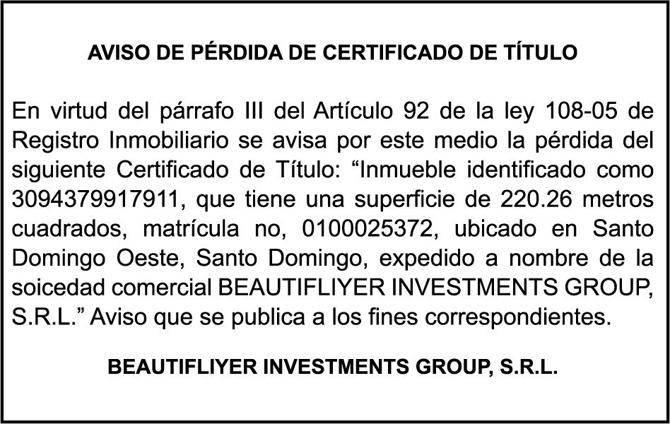 SE hace de público conocimiento la pérdida del Certificado Financiero número 847788056 emitido por Banco Popular Dominicano, S. A. Banco Múltiple, a nombre de PRISCILLA ANABEL RODRIGUEZ BETHENCOURT, portadora de la Cédula de Identidad y Electoral número 001-1385460-8, certificado número 847788056 expedido en fecha 11 de marzo de 2025 por el monto de (RD$306,676.69) más intereses generados a la fecha.