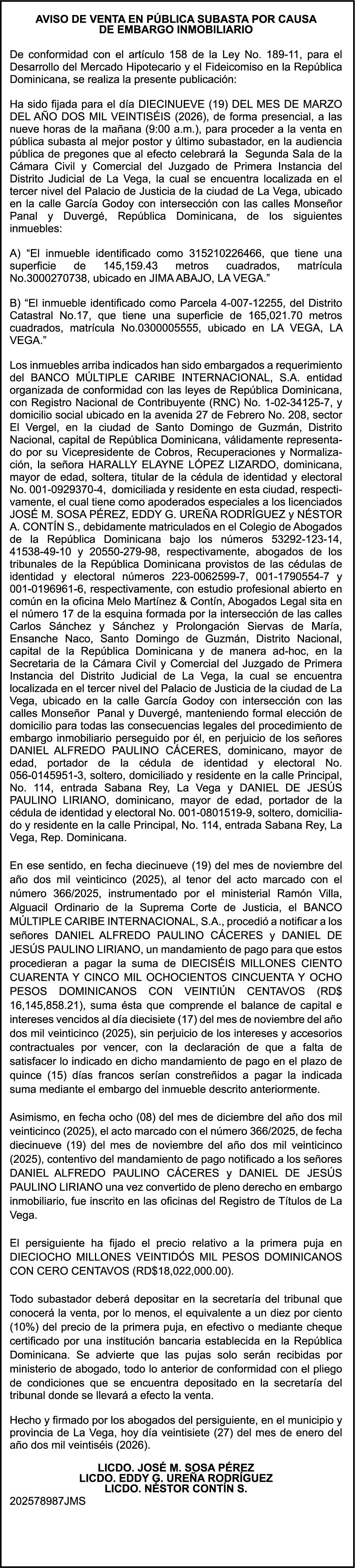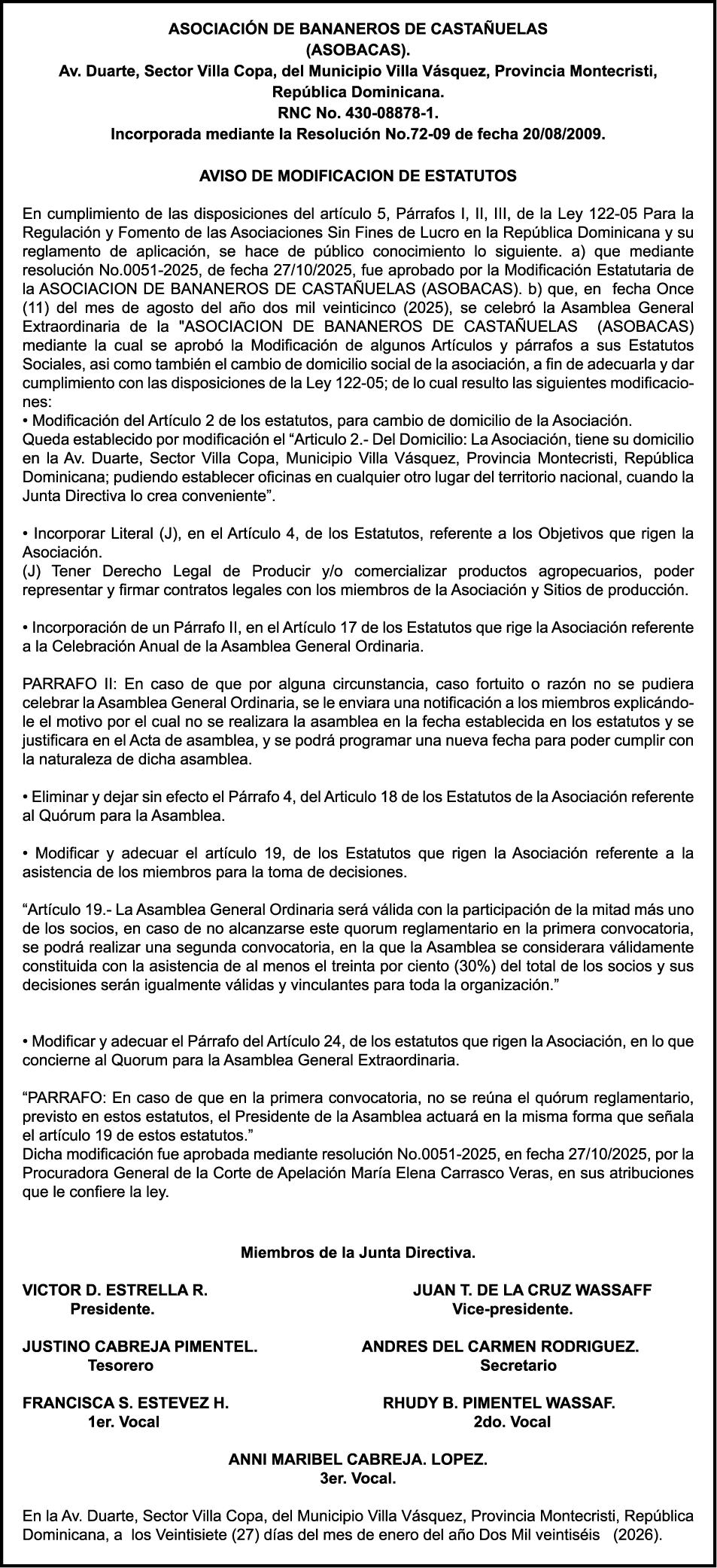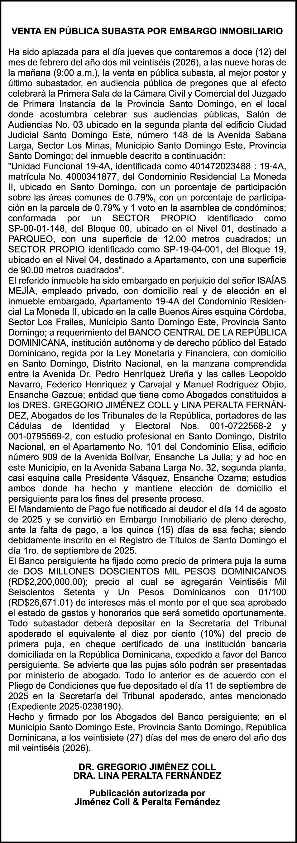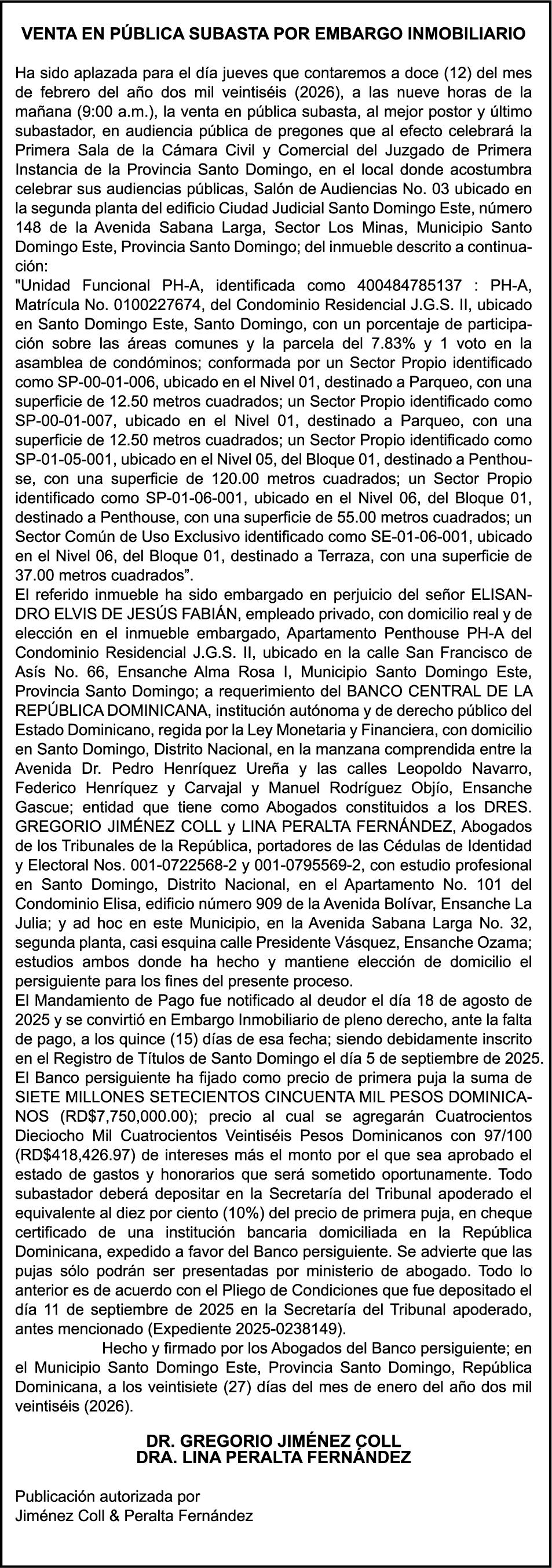 SE hace de público conocimiento la pérdida del Certificado Financiero número 845889815 emitido por Banco Popular Dominicano, S. A. Banco Múltiple, a nombre de NURYS MERCEDES TORRES ROJAS, portadora de la Cédula de Identidad y Electoral número 028-0090028-0, certificado número 845889815 expedido en fecha 9 de diciembre de 2024 por el monto de (RD$500,000.00) más intereses generados a la fecha.