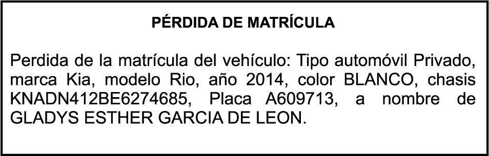 PERDIDA DE PLACA AUTOMOVIL
