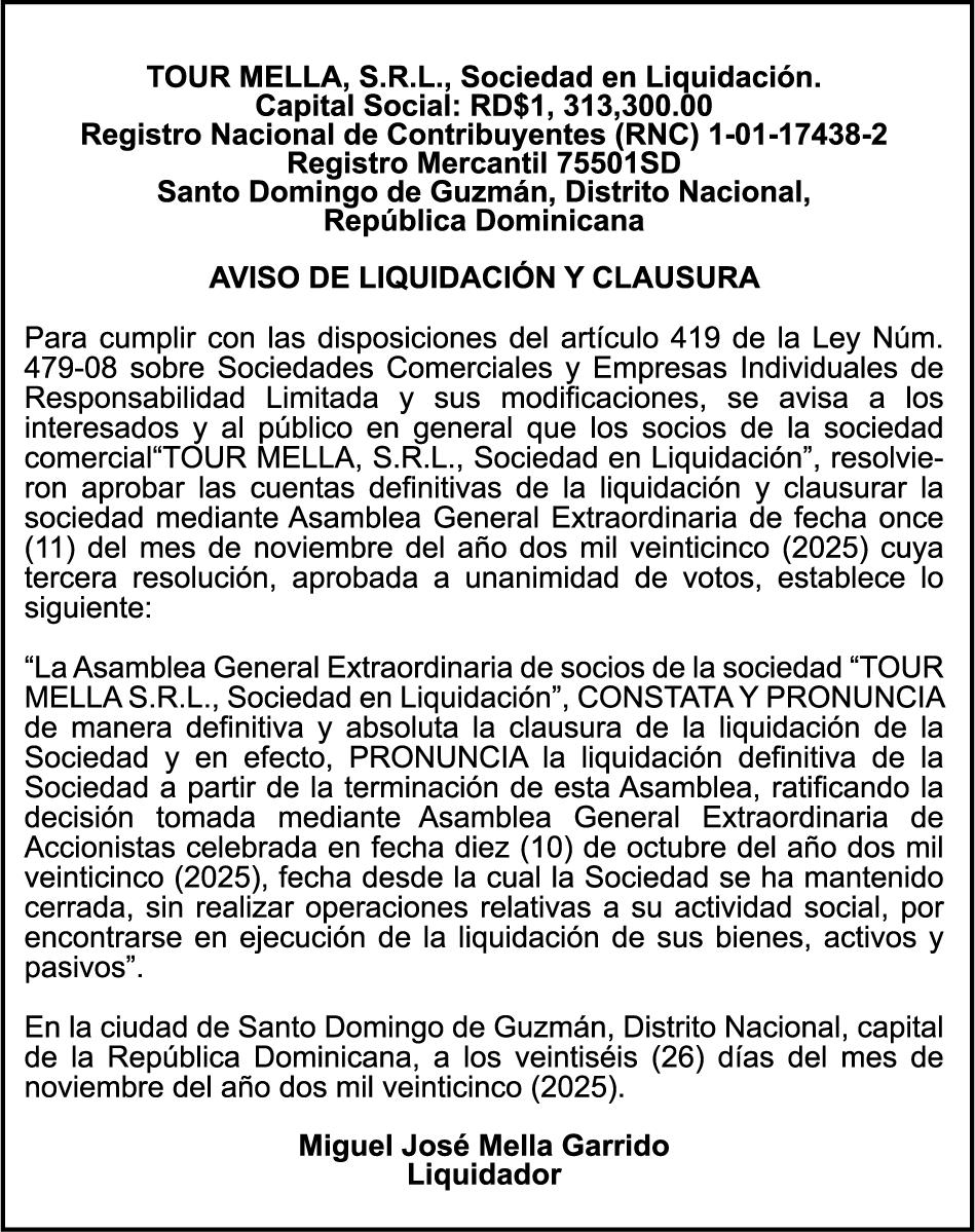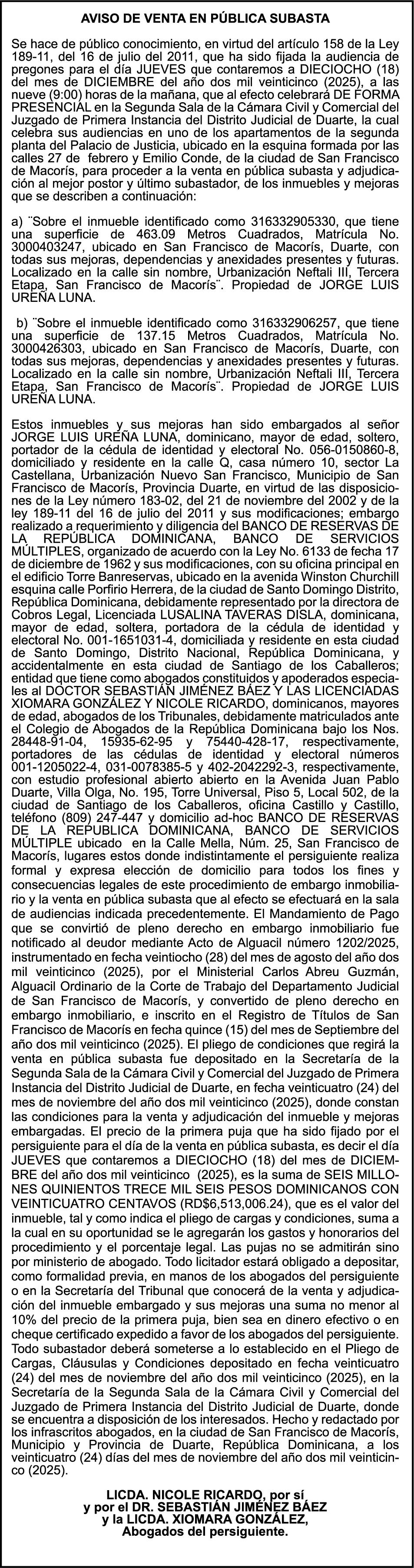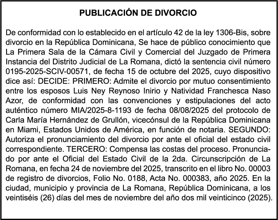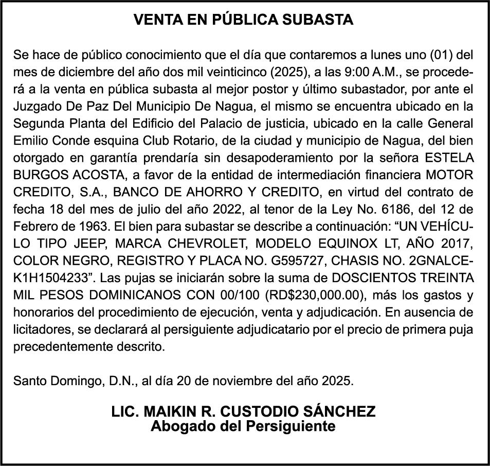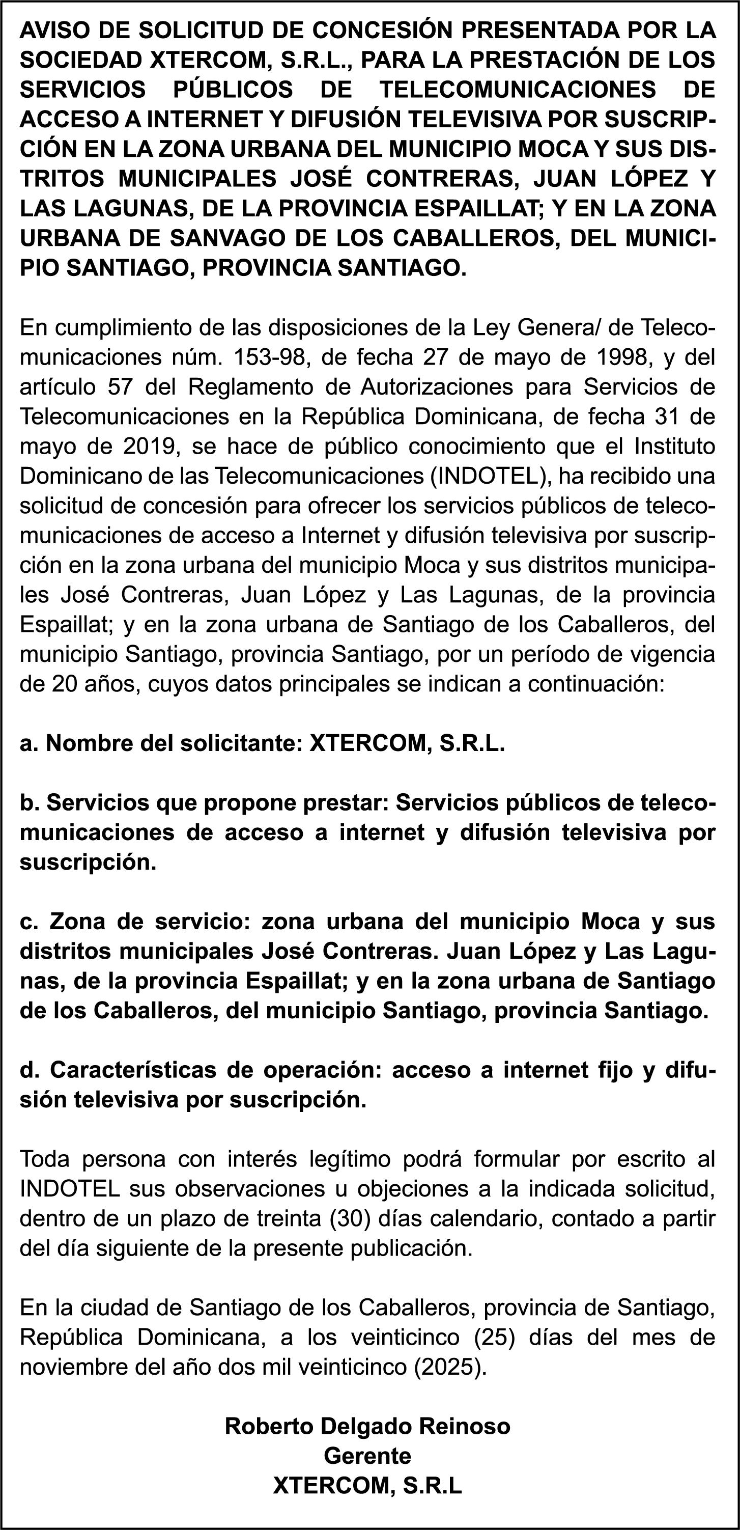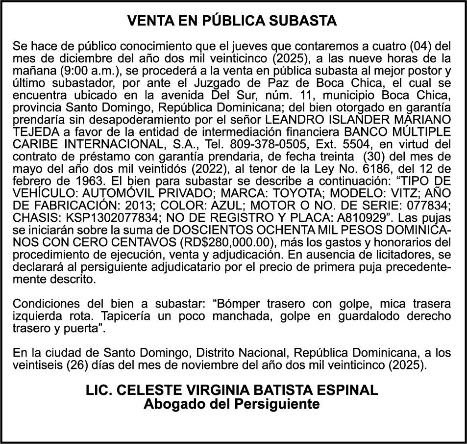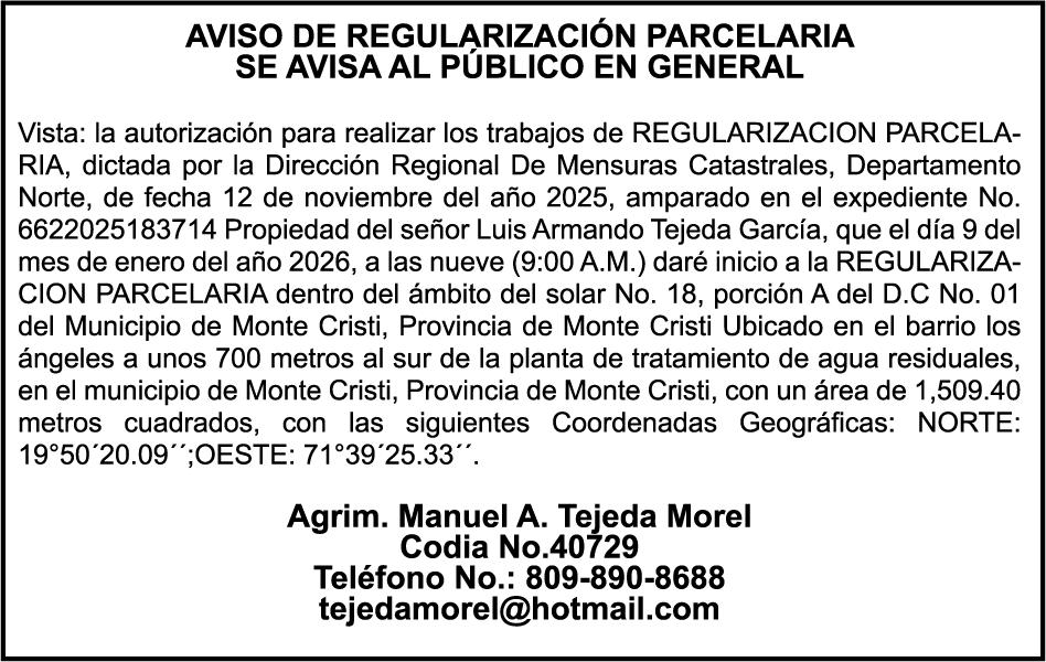 SE hace de público conocimiento la pérdida del Certificado Financiero número 850996554 emitido por Banco Popular Dominicano, S. A. Banco Múltiple, a nombre de ALBERTO CHALAS MARTINEZ, portador de la Cédula de Identidad y Electoral número 001-0595338-4, certificado número 850996554 expedido en fecha en fecha 7 de agosto de 2025 por el monto de (RD$3,000,000.00) más intereses generados a la fecha.