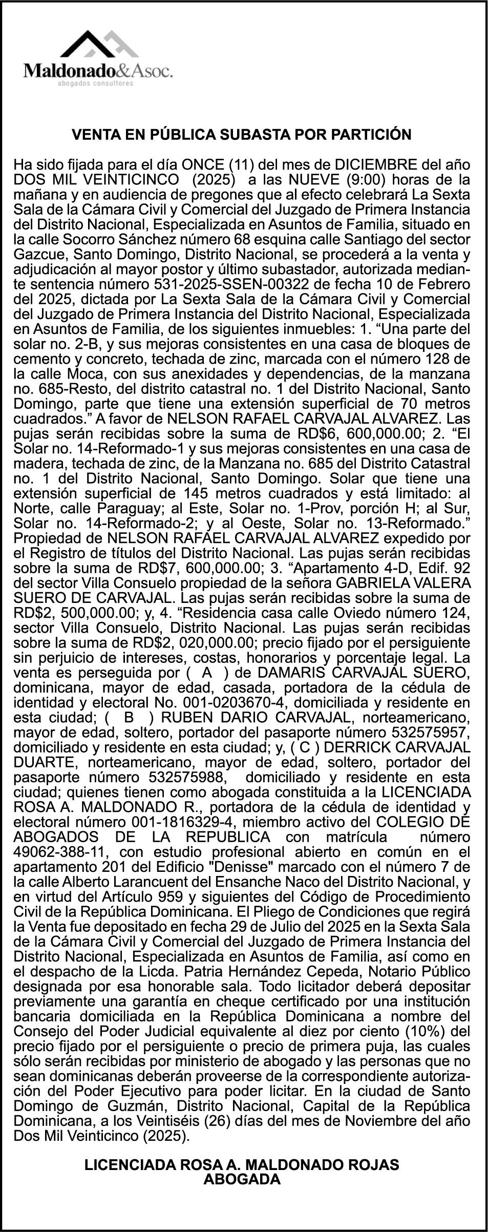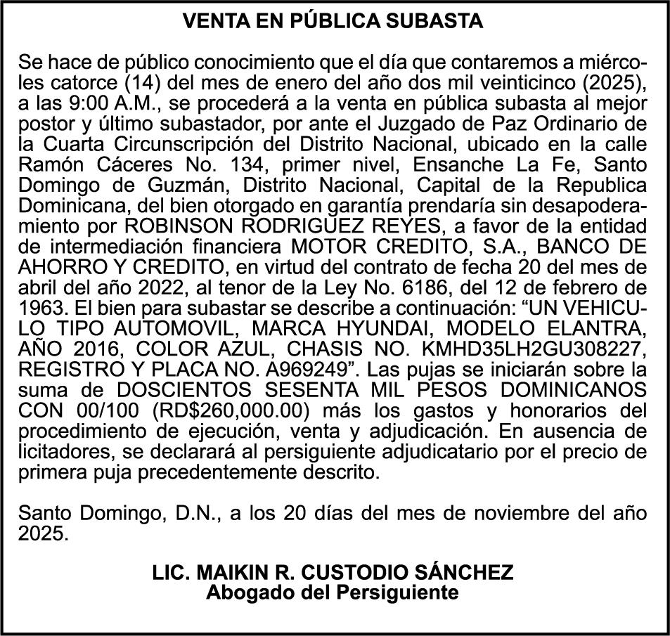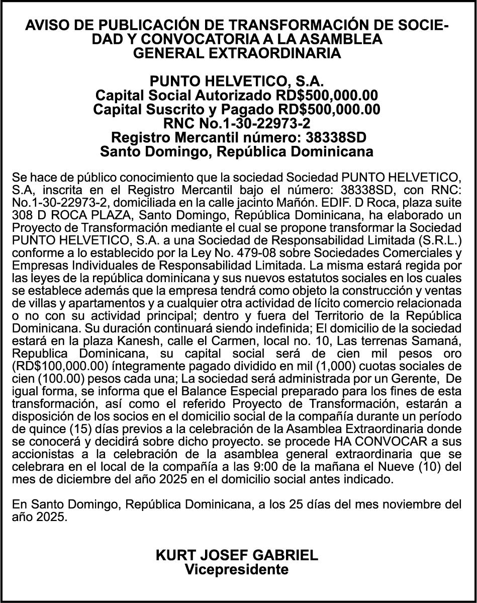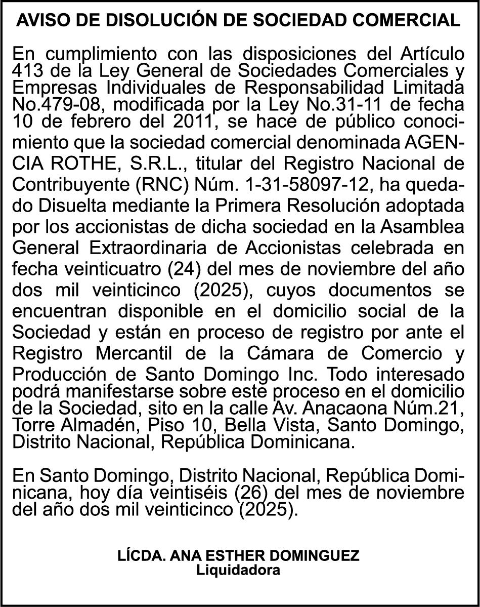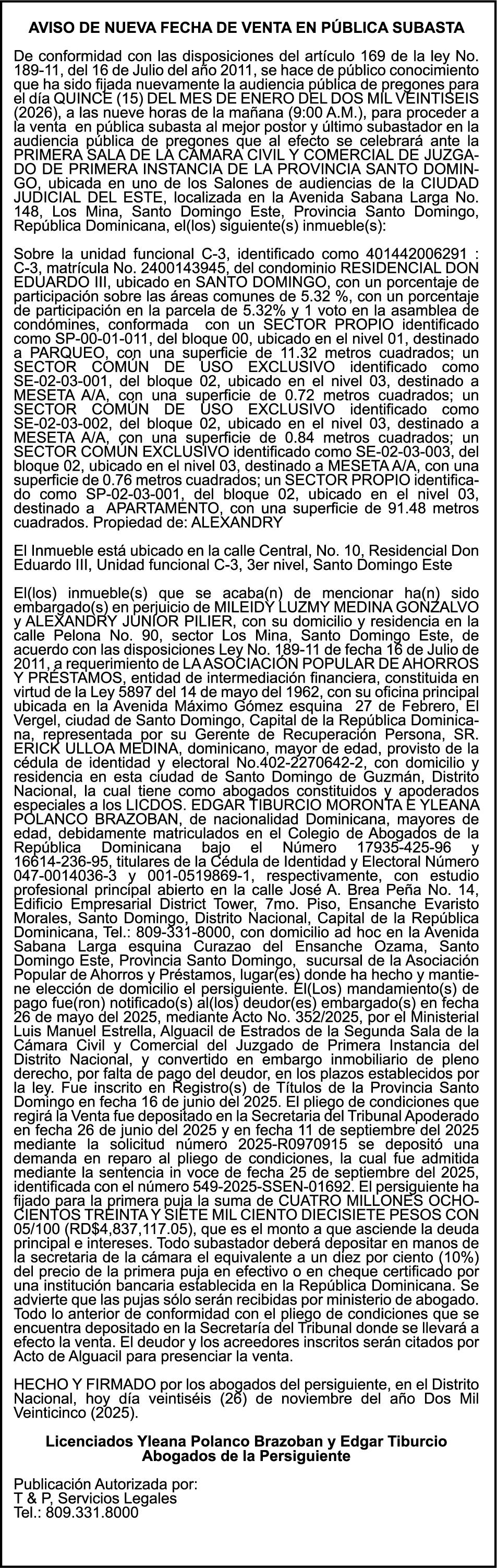 SE hace de público conocimiento la pérdida del Certificado Financiero número 850996554 emitido por Banco Popular Dominicano, S. A. Banco Múltiple, a nombre de ALBERTO CHALAS MARTINEZ, portador de la Cédula de Identidad y Electoral número 001-0595338-4, certificado número 850996554 expedido en fecha en fecha 7 de agosto de 2025 por el monto de (RD$3,000,000.00) más intereses generados a la fecha.