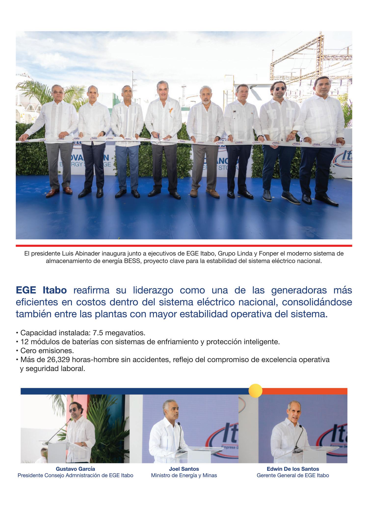 El presidente Luis Abinader, funcionarios del sector eléctrico y ejecutivos de EGE Itabo asistieron a la puesta en marcha del nuevo Sistema de Almacenamiento de Energía en Baterías en Bajos de Haina. P.26