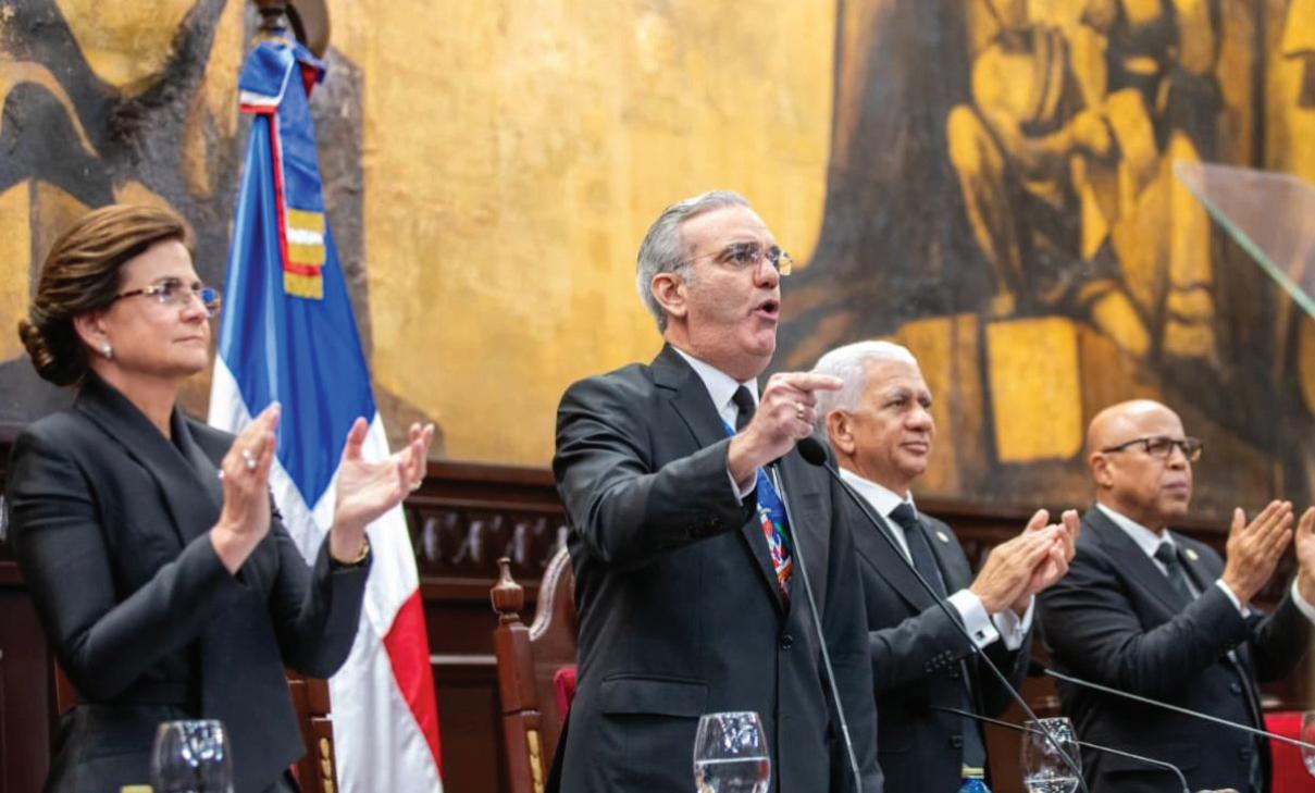 En cuanto a la IED, informó que en 2025 el país captó por primera vez más de US$5,000 millones, y acumuló cuatro años consecutivos por encima de los US$4,000 millones anuales. Según expresó, este flujo sostenido de capital es reflejo de la estabilidad institucional, la seguridad jurídica y la confianza que inspira la República Dominicana en los mercados internacionales. En el ámbito fiscal, el jefe de Estado indicó que al cierre de 2025 la deuda pública consolidada se situó en 58.5% del PIB, y mantuvo una trayectoria descendente frente al 69.1% que registraba en diciembre de 2020.