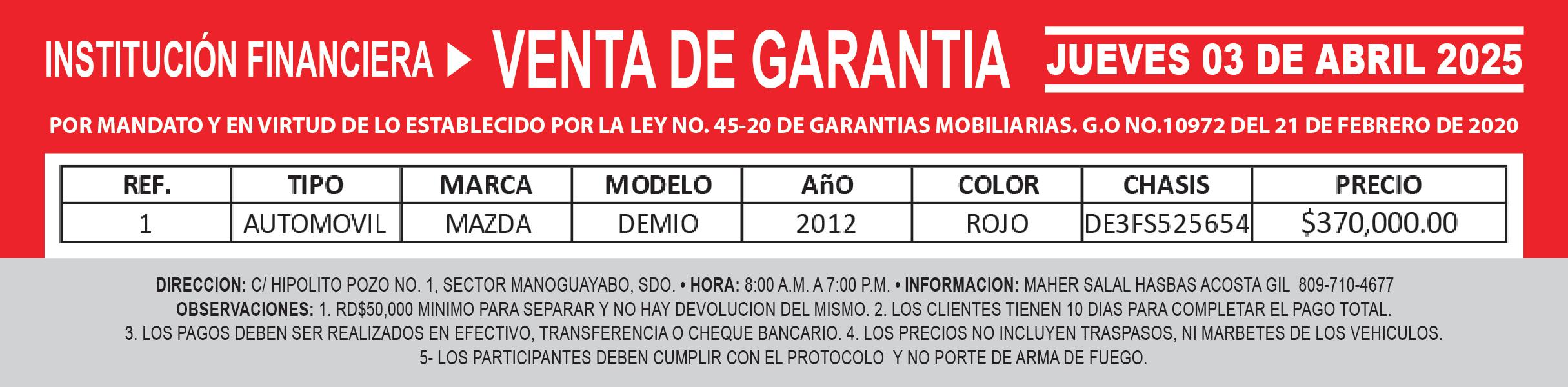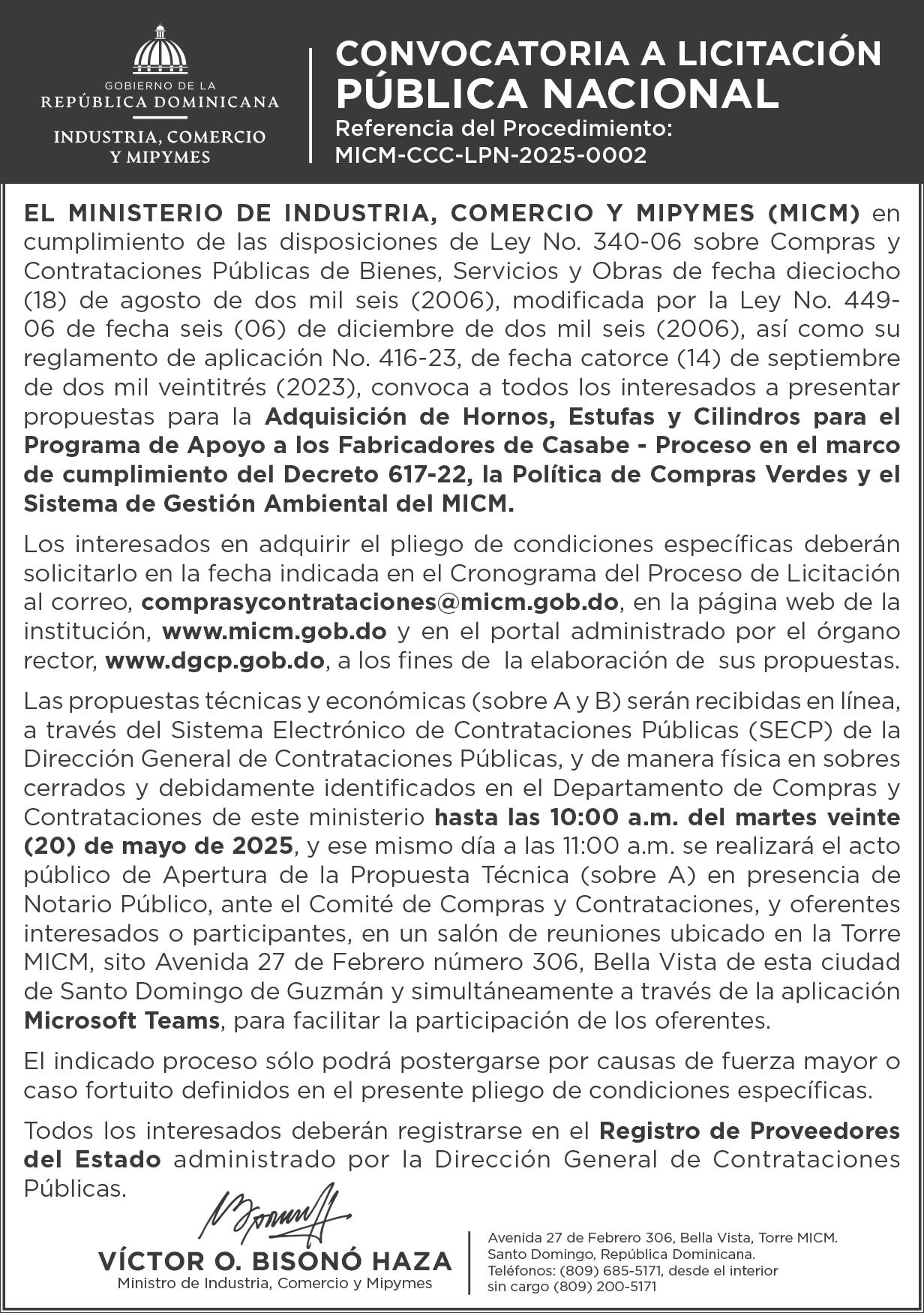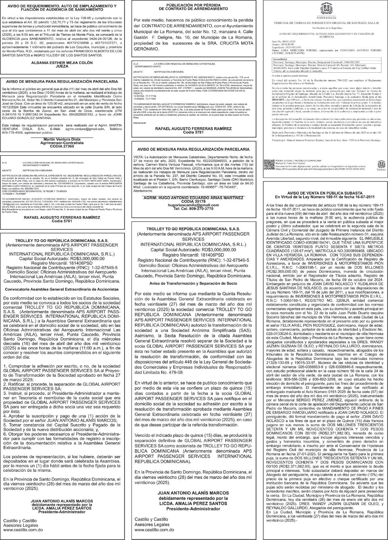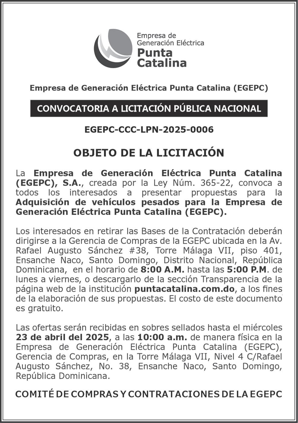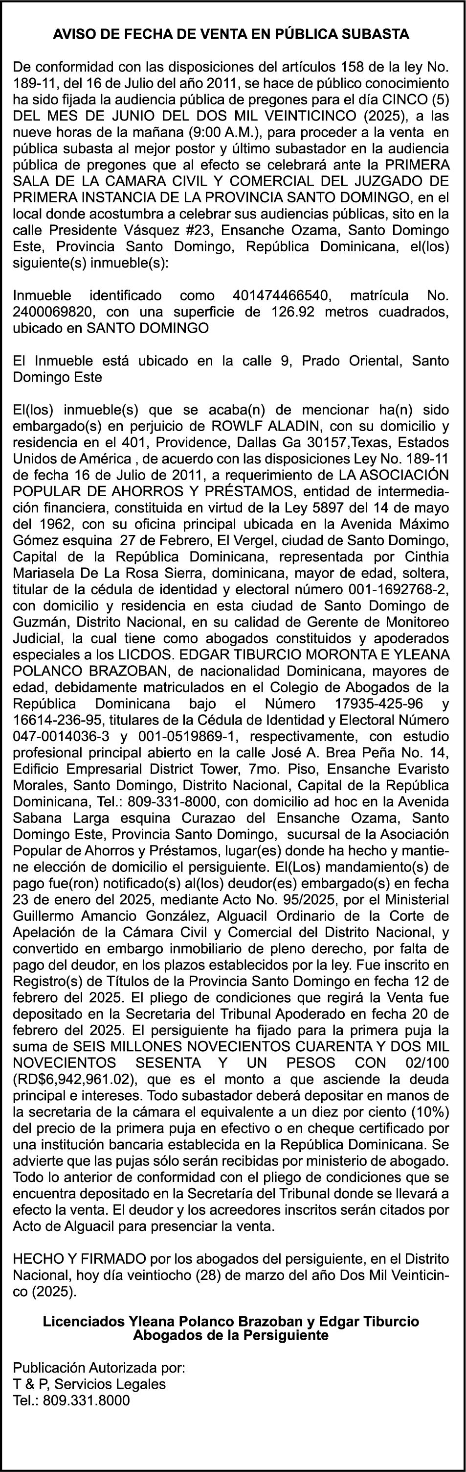 9:00 A.M. Bienes Nacionales invita a subasta pública. Biblioteca Nacional Pedro Henríquez Ureña, Salón Aída Cartagena Portalatín.