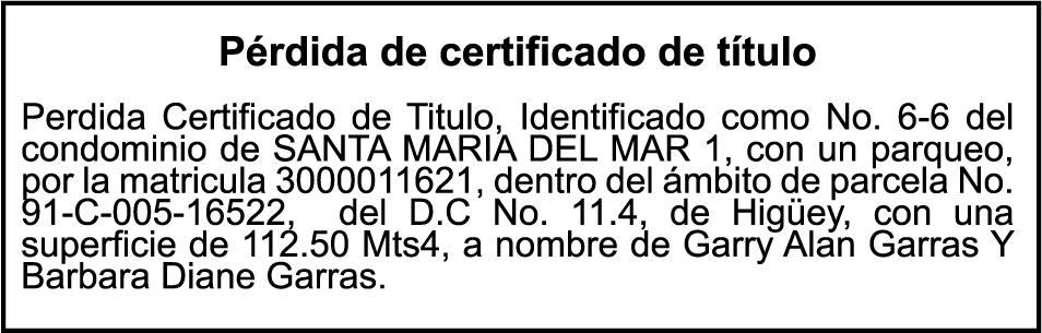 PERIDA DE MATRICULA: Del Vehiculo, Placa U008453, Chasis 2974219694, Marca MASSEY FERGUSON , Modelo MF290, AÑO 2006, Color ROJO, a nombre de BERNARDO ALEMAN RODRIGUEZ, Ced.