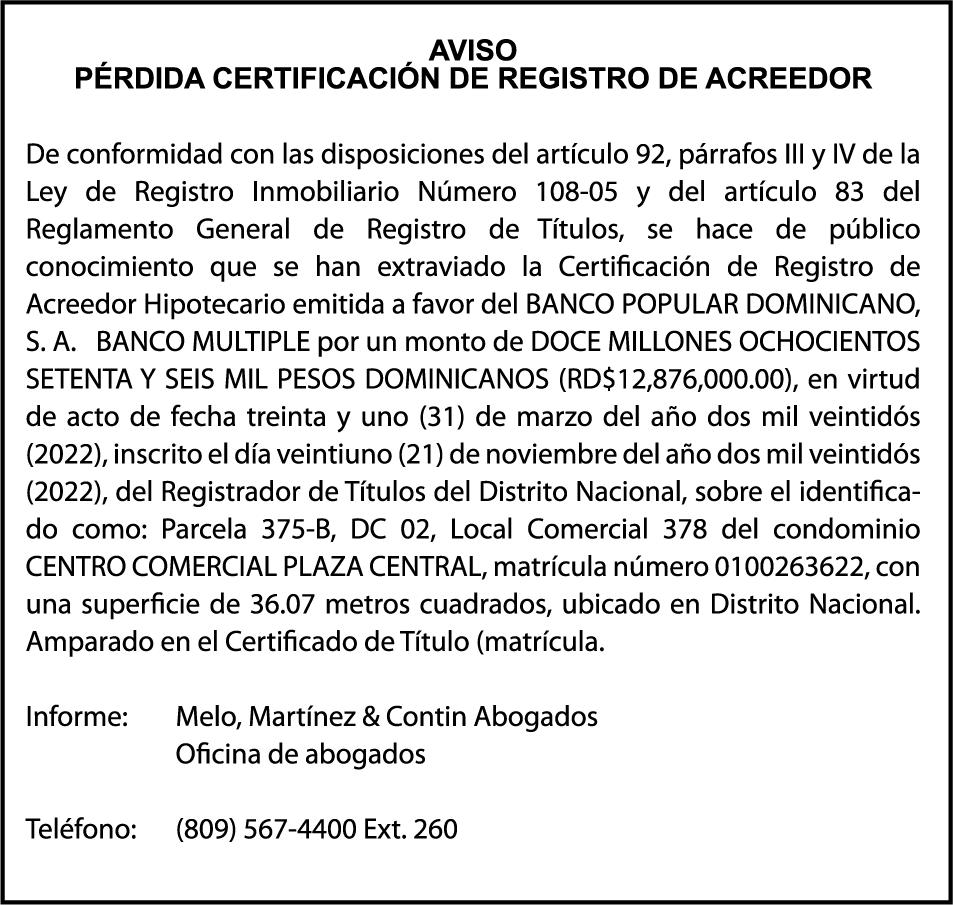 PERDIDA DE PLACA No. L498889, Veh. Carga JAC, Modelo HFC1160KR, Color blanco, Año 2024, Chasis LJ11R9DG4R3500448, a nombre de EDGAR JOSE RODRIGUEZ DE LA ROSA.