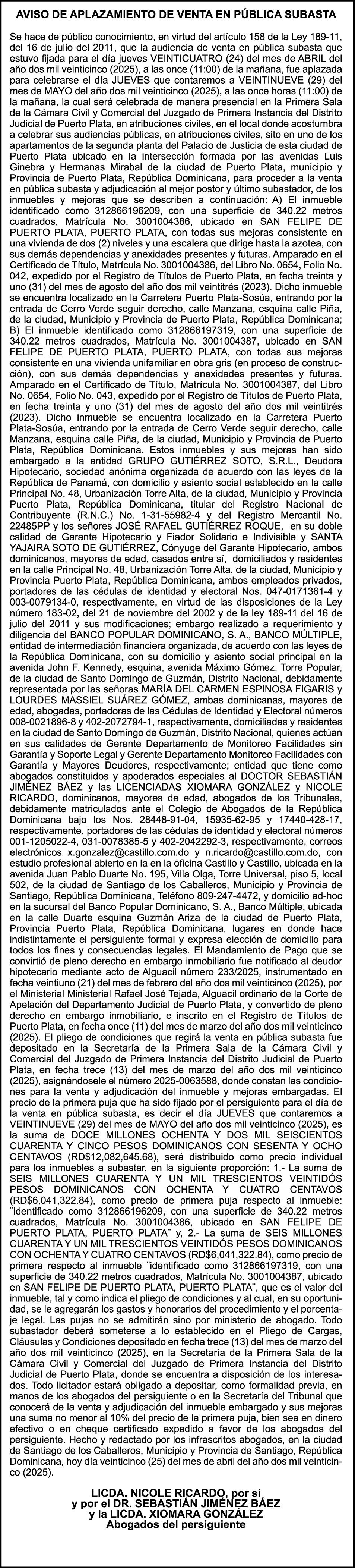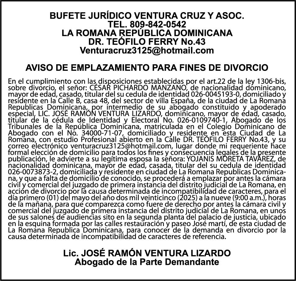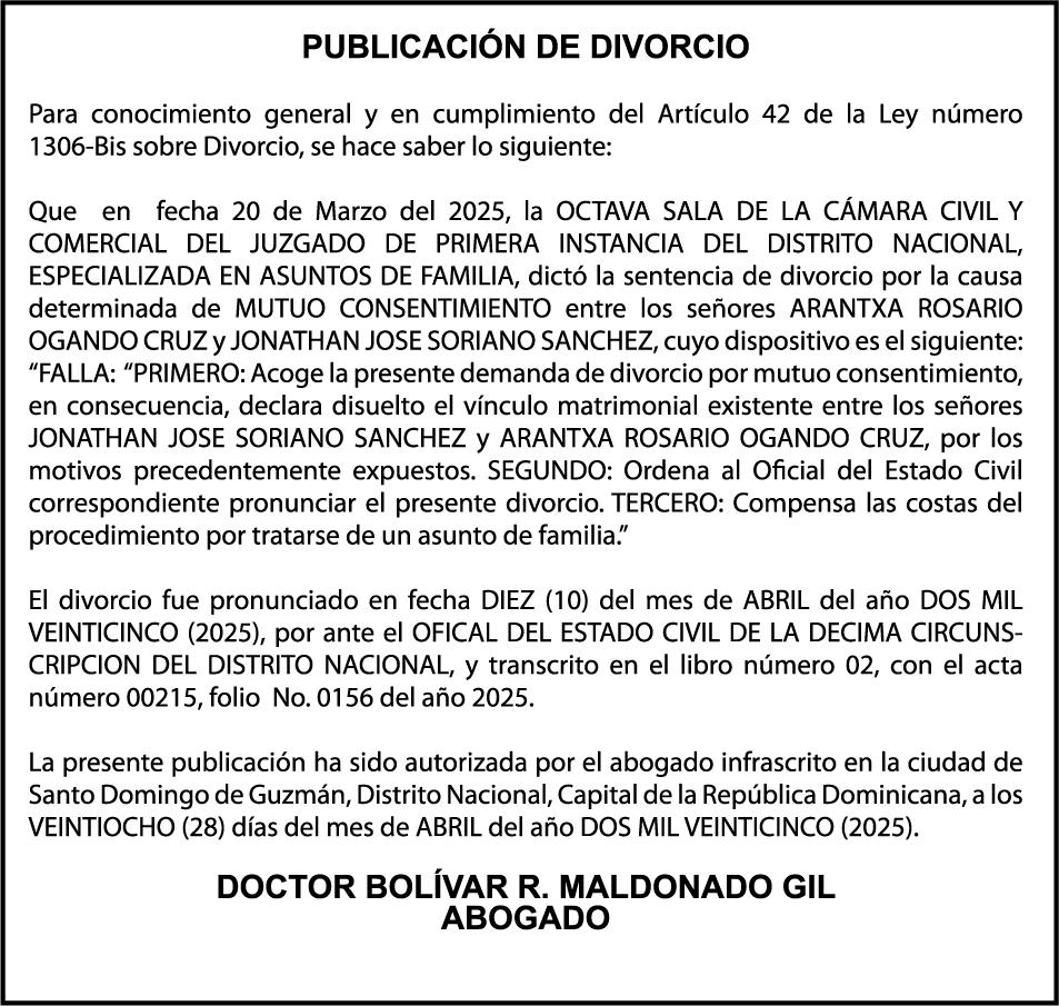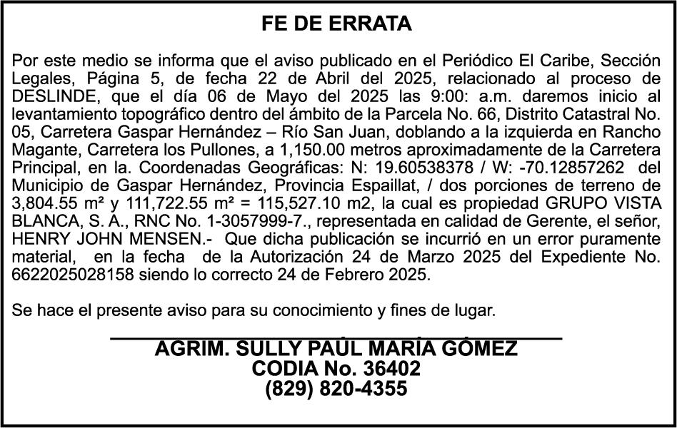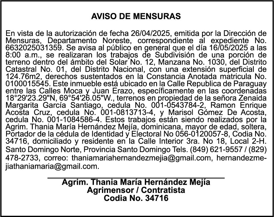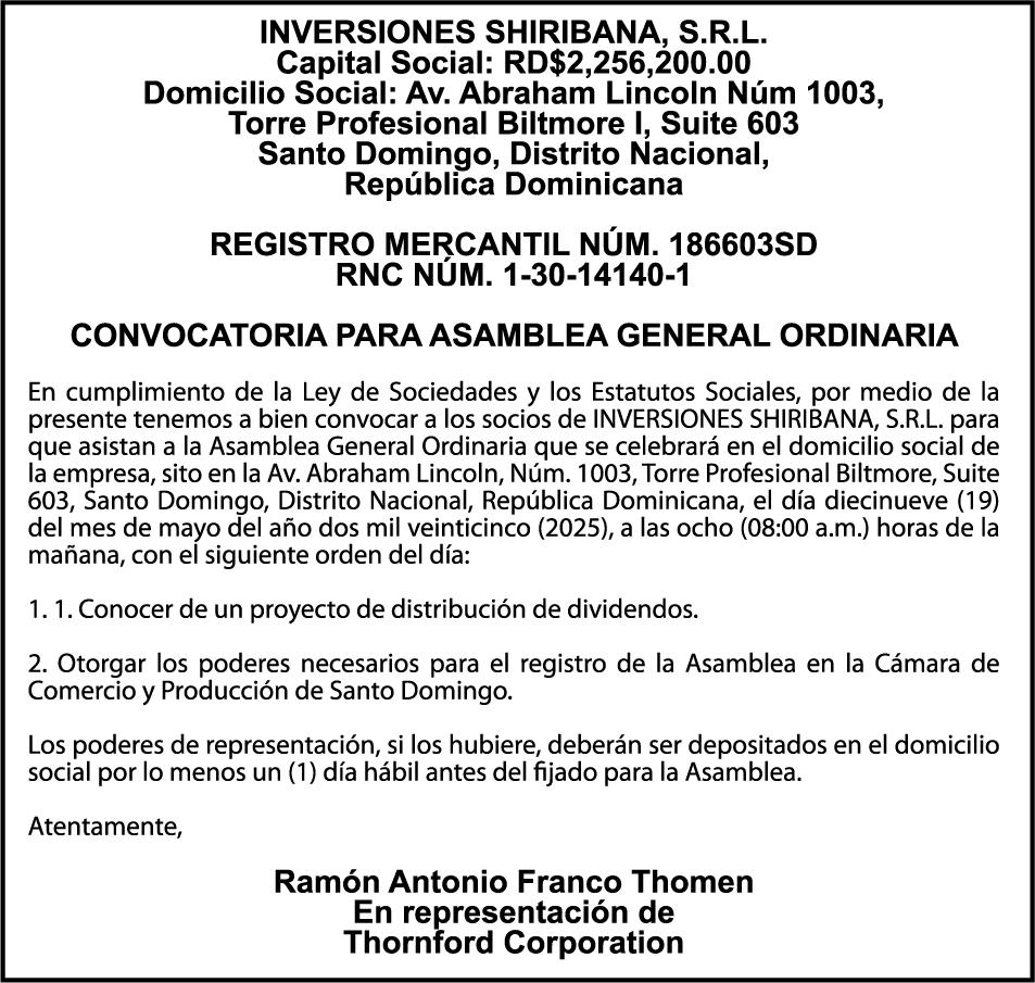 SE hace de público conocimiento la pérdida del Certificado Financiero número 846268639 emitido por Banco Popular Dominicano, S. A. Banco Múltiple, a nombre de CARMEN LALINE ARACHE RODRIGUEZ, portadora de la Cédula de Identidad y Electoral número 402-2715880-1, certificado número 846268639 expedido en fecha 31 de diciembre del 2024 por el monto de (US$101, 039.20) más intereses generados a la fecha.