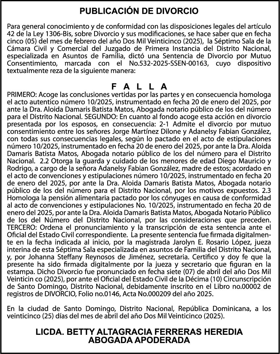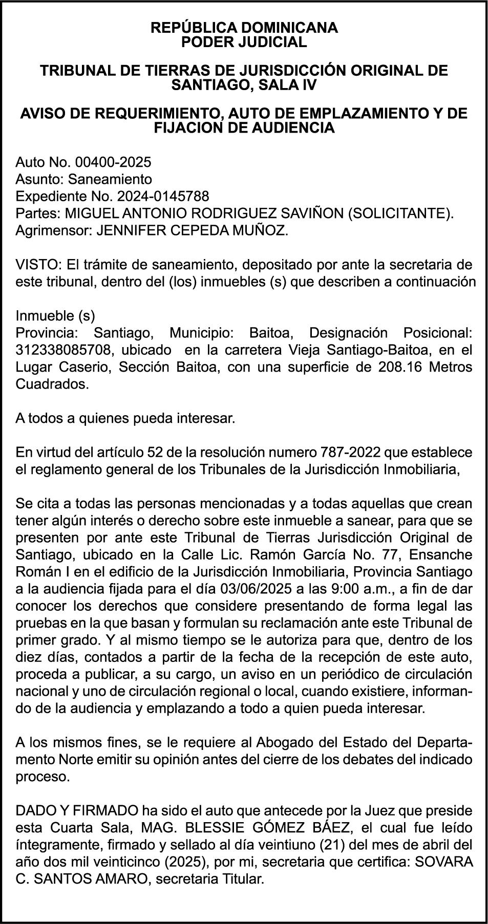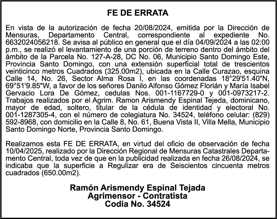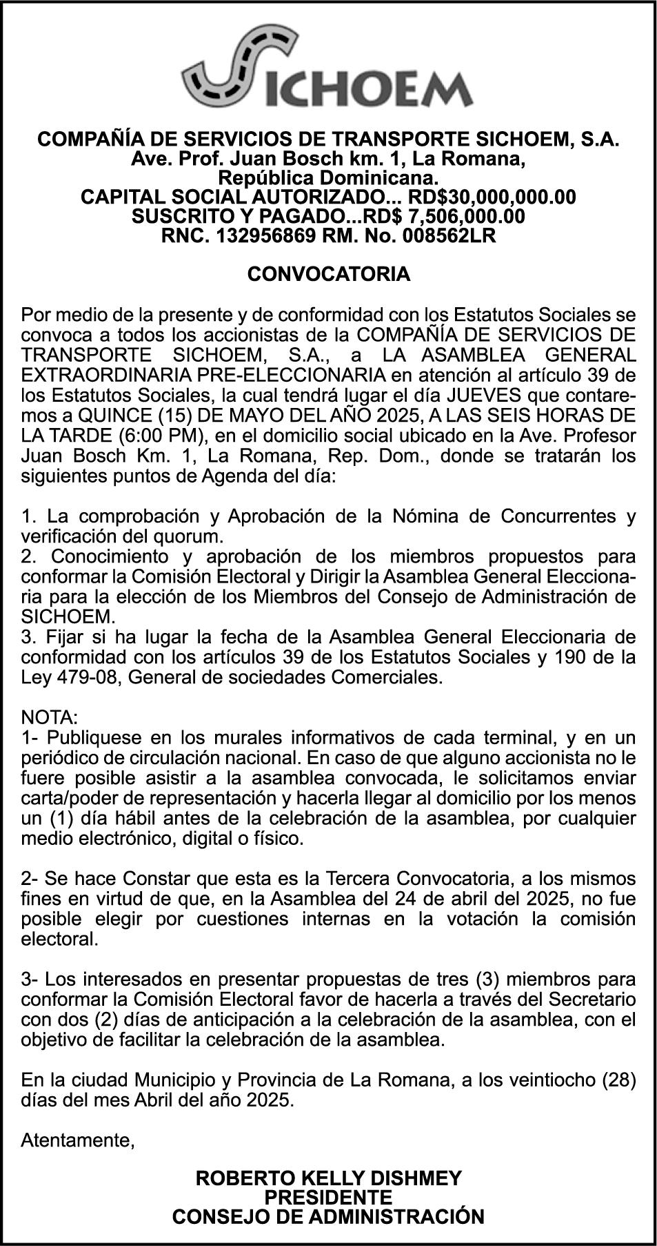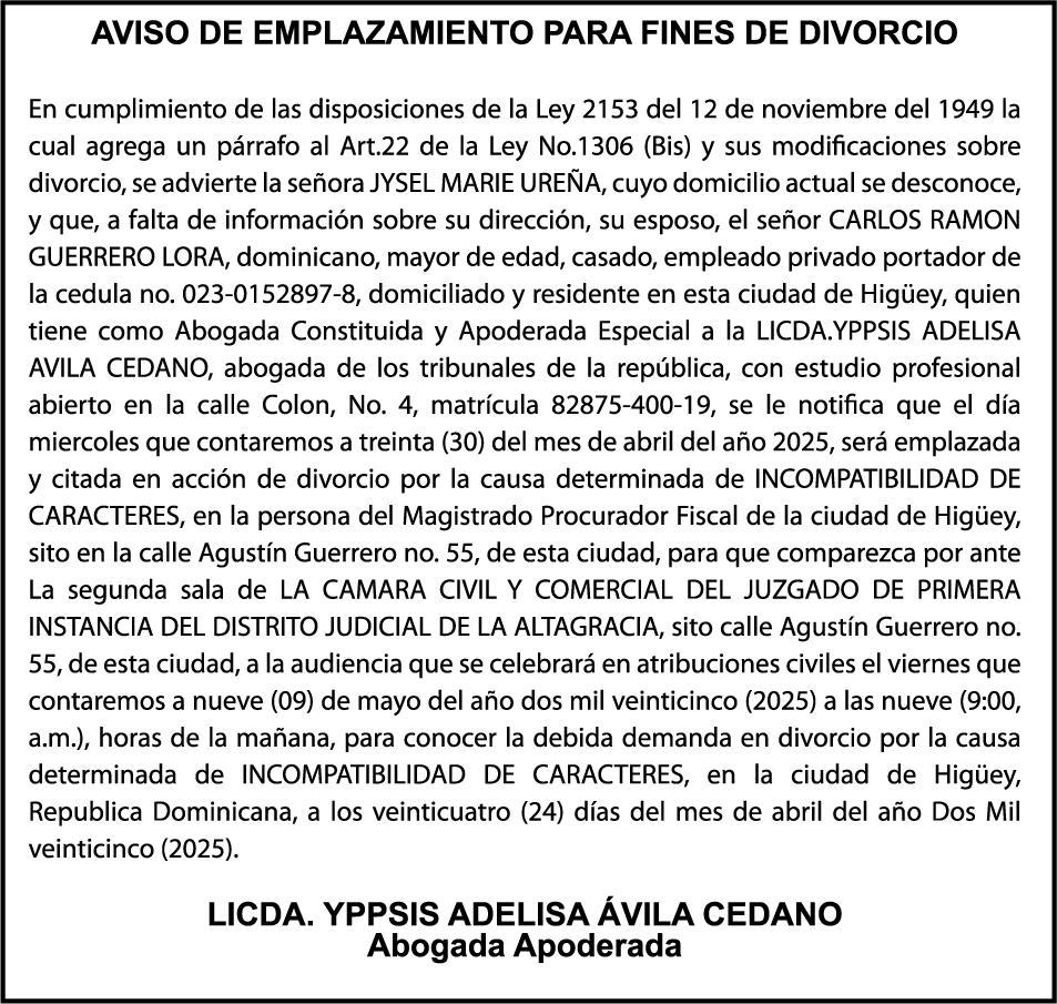 SE hace de público conocimiento la pérdida del Certificado Financiero número 846268639 emitido por Banco Popular Dominicano, S. A. Banco Múltiple, a nombre de CARMEN LALINE ARACHE RODRIGUEZ, portadora de la Cédula de Identidad y Electoral número 402-2715880-1, certificado número 846268639 expedido en fecha 31 de diciembre del 2024 por el monto de (US$101, 039.20) más intereses generados a la fecha.