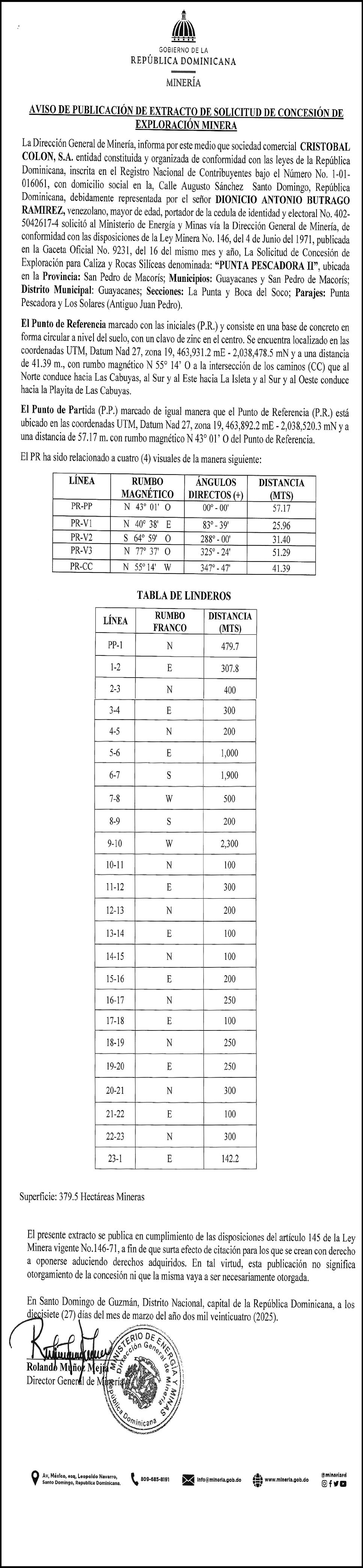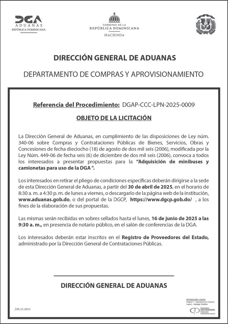 AVISO: perdida de matricula Se hace de publico conocimiento la perdida de la matricula del bote “ORANGE CRUSH”, No. BR-O63-4642SDG, de 26´2 de eslora, 9.0 de manga y 6.2 de puntal, de color Naran, propiedad del sr. VICTOR RAMON HENRIQUEZ BENCOSME.