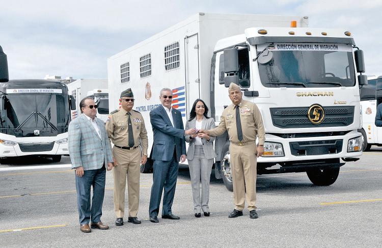 LOGÍSTICA. A fin de continuar con las detenciones y deportaciones de indocumentados, pese a las críticas recibidas por distintos sectores y organismos, el presidente Luis Abinader entregó ayer otros 58 vehículos a la Dirección General de Migración con los que suman ya 118 los entregados para las labores operativas de esa institución.