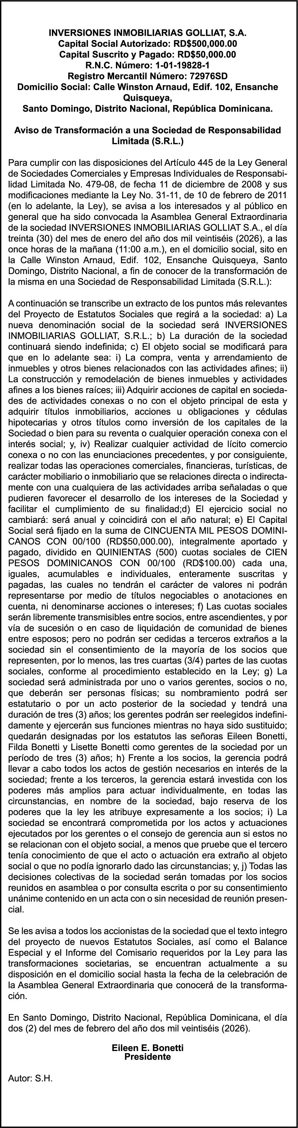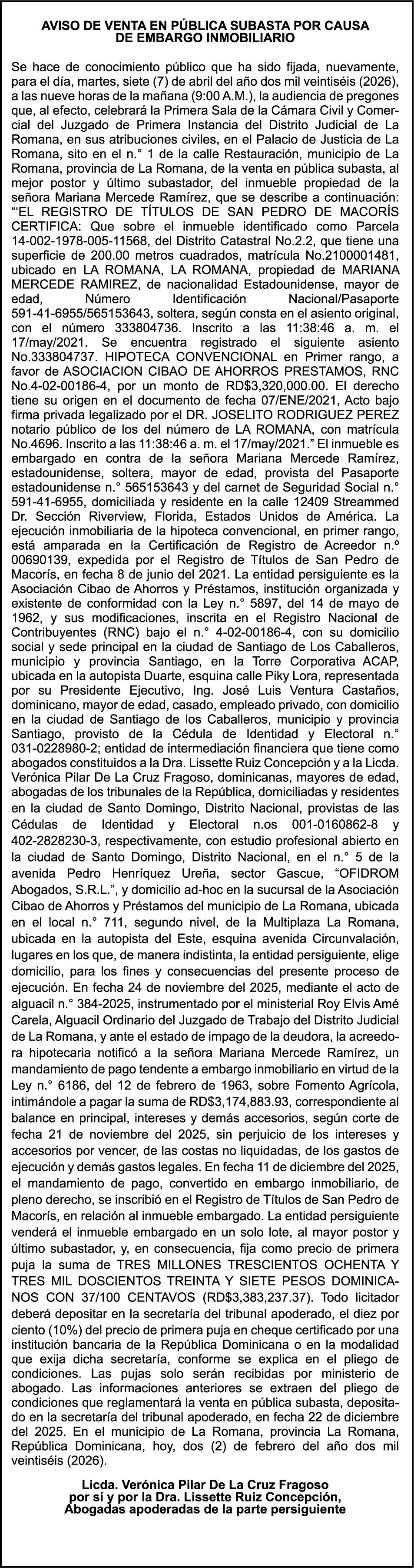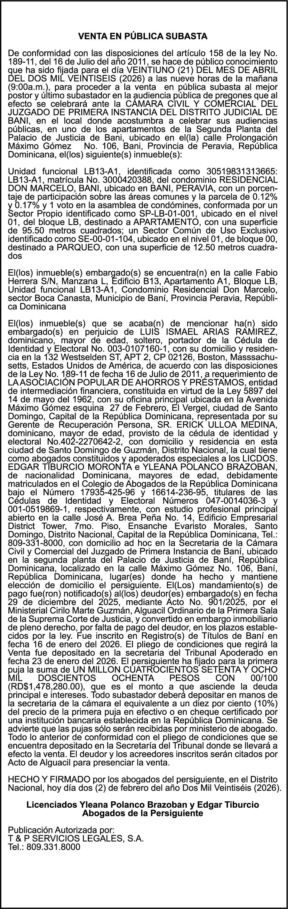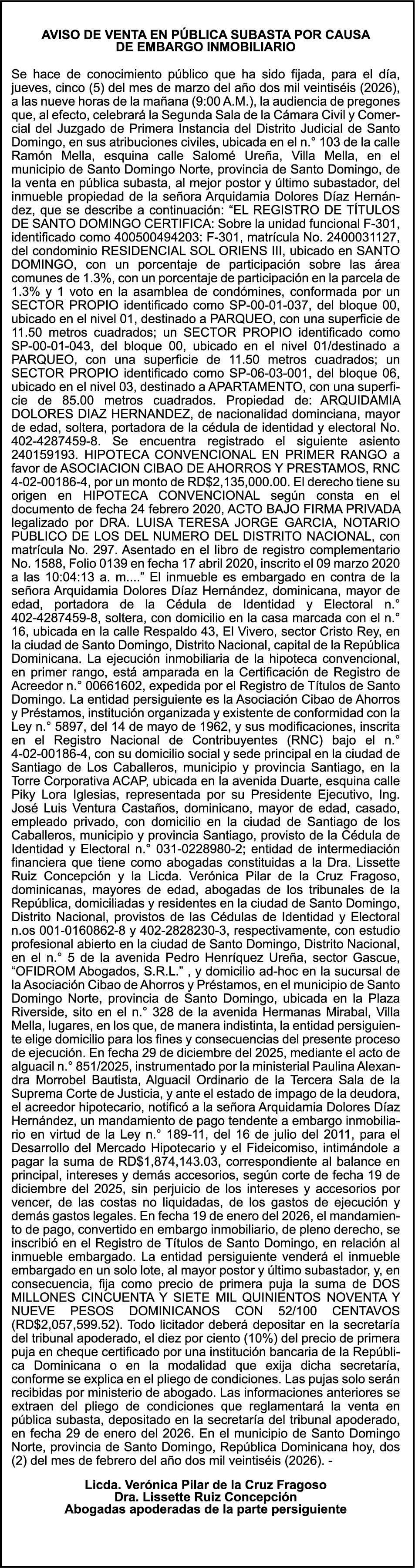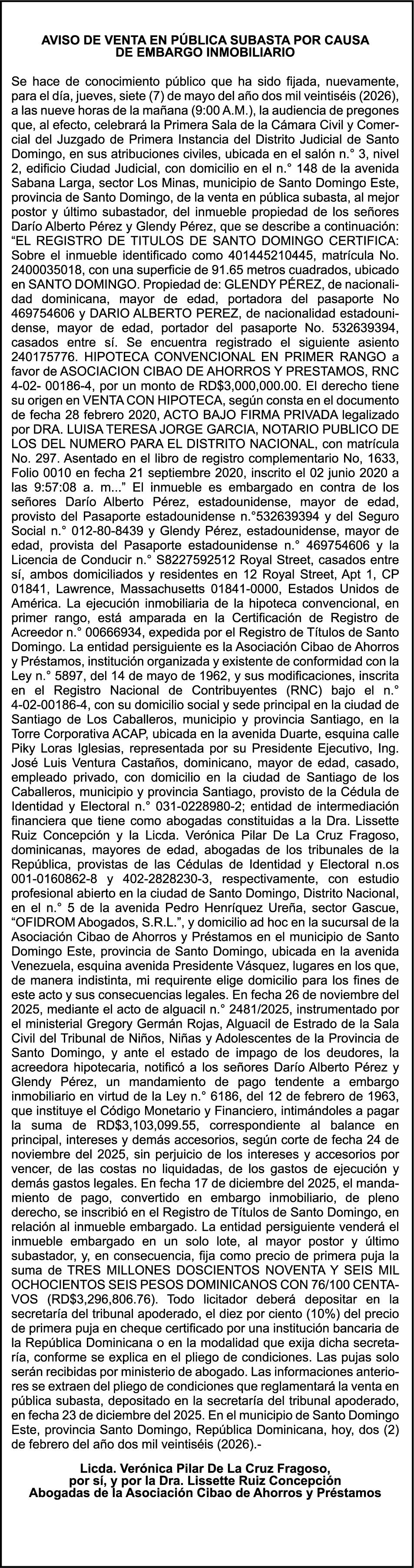 SE hace de público conocimiento la pérdida del Certificado Financiero número 847880119 emitido por Banco Popular Dominicano, S. A., a nombre de INDHIRA ROSALIA RODRIGUEZ VALDEZ, portadora de la Cédula de Identidad y Electoral número 402-3129189-5, certificado número 847880119 expedido en fecha 14 de marzo del 2025 por el monto de (RD$450,873.49), más intereses generados a la fecha.