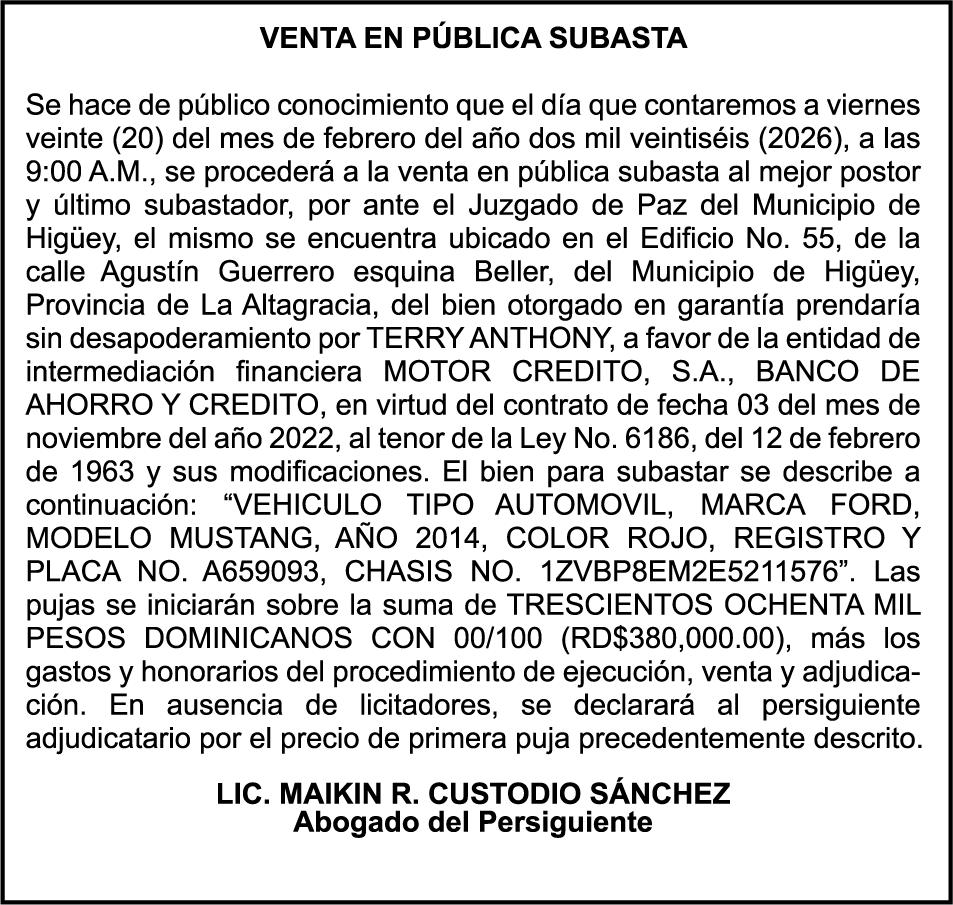 PERDIDA DE PLACA: UN VEHICULO MOTOCICLETA PRIVADA, MARCA TAURO, MODELO CG 200, AÑO 2015,COLOR ROJO, NUMERO DE REGISTRO Y PLACA 0766593, CHASIS TARPCM508FC003136,FUERZ A MOTRIZ 200, CILINDROS 1, MOTOR NO. SERIE 163FML-2F5045846, PASAJEROS 2,MATRICULA NO.17806009 DE FECHA 17/01/2026.