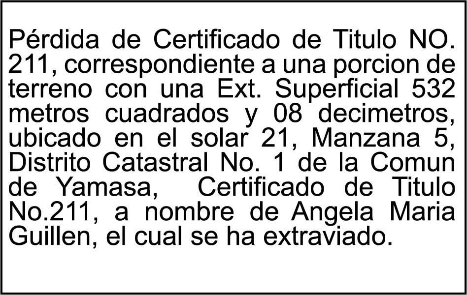 SE hace de público conocimiento la pérdida del Certificado Financiero número 754301646 emitido por Banco Popular Dominicano, S. A. Banco Múltiple, a nombre de MARCOS JOSE GONZALEZ PUELLO, portador de la Cédula de Identidad y Electoral número 001-1089191-8, certificado número 754301646 expedido en fecha 13 de julio de 2009, por el monto de (RD$309,439.09) más intereses generados a la fecha.
