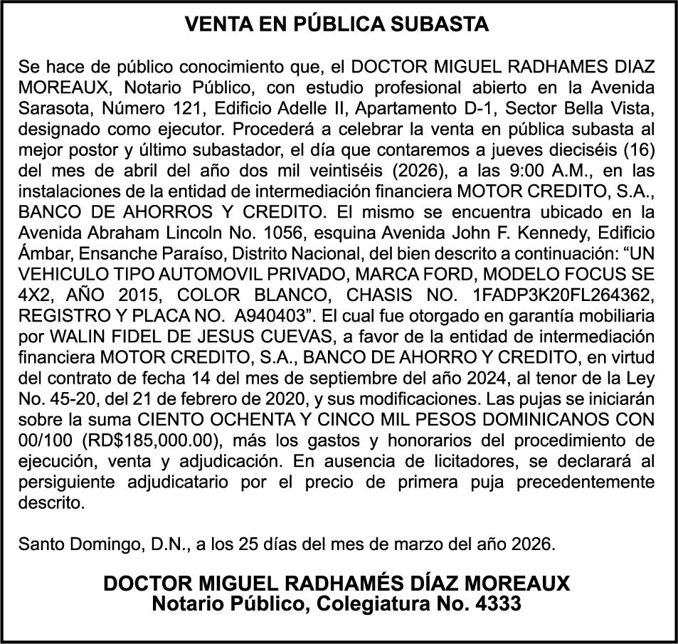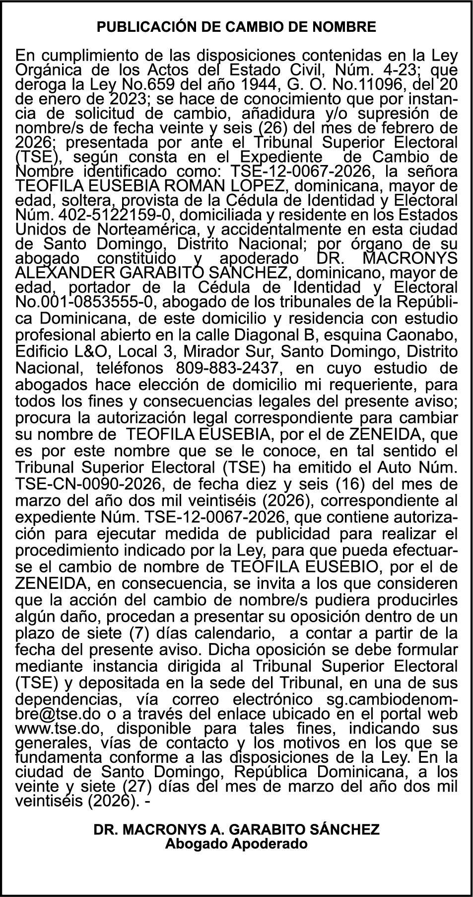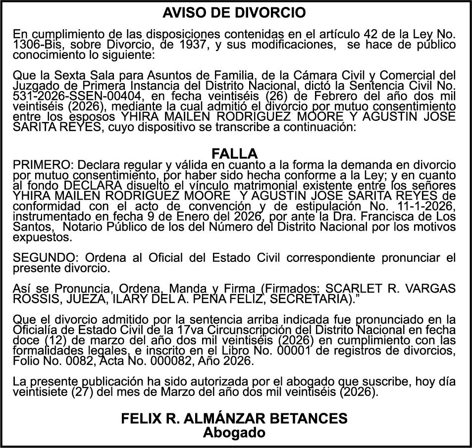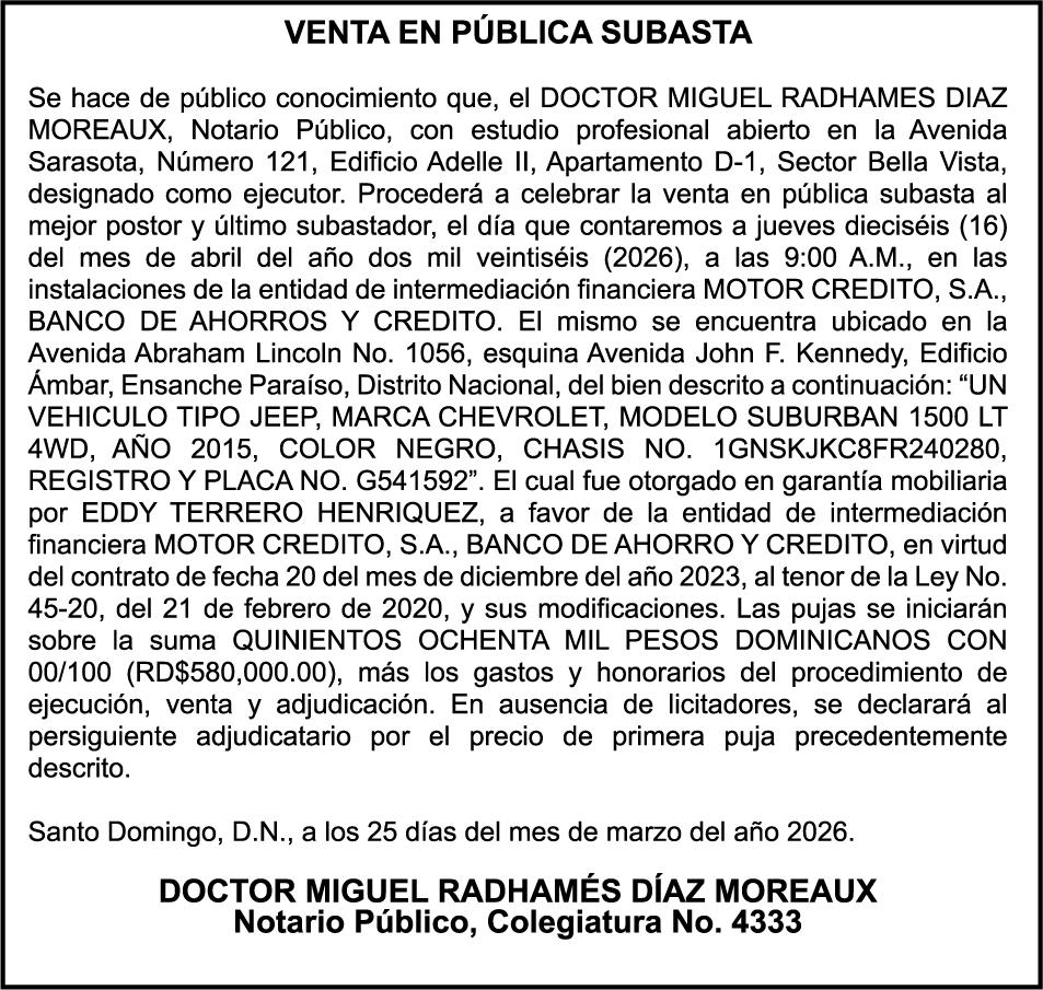SE hace de público conocimiento la pérdida del Certificado Financiero número 839599883 emitido por Banco Popular Dominicano, S. A. Banco Múltiple, KATTY LOPEZ CONTRERAS, portadora de la Cédula de Identidad y Electoral número 001-1738085-7 y DOLAINES ROSALIS TOLENTINO LOPEZ , portadora de la Cédula de Identidad y Electoral número 402-3305654-4, certificado número 839599883, expedido en fecha 28 de febrero de 2024 por el monto de (RD$55,781.67) más intereses generados a la fecha.