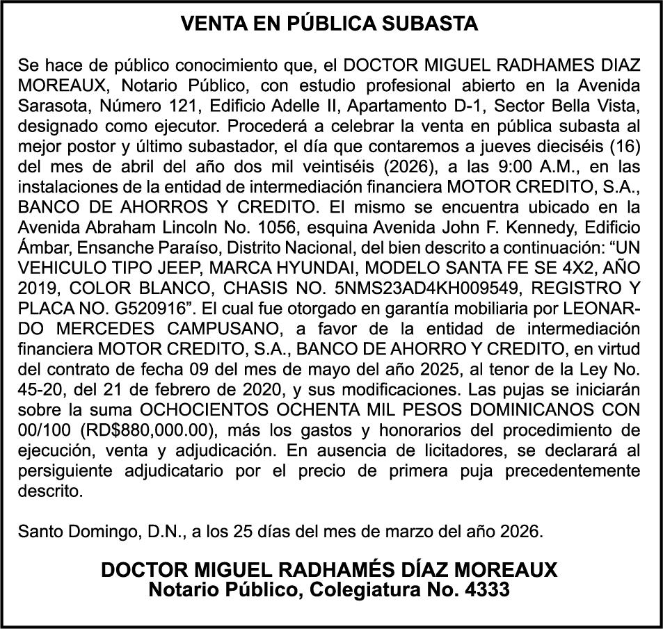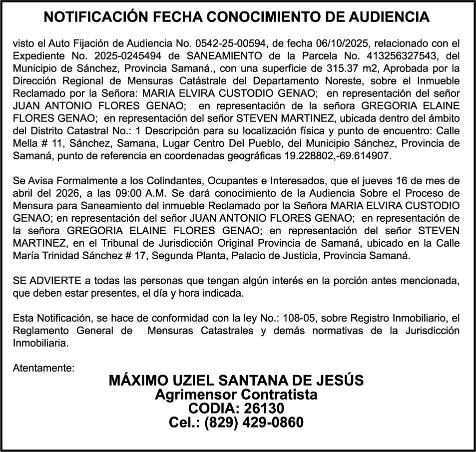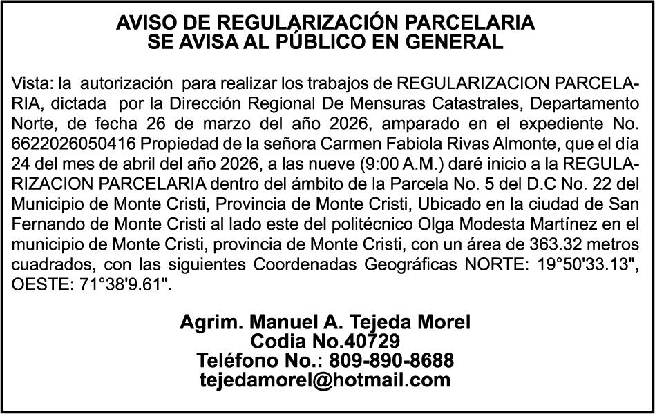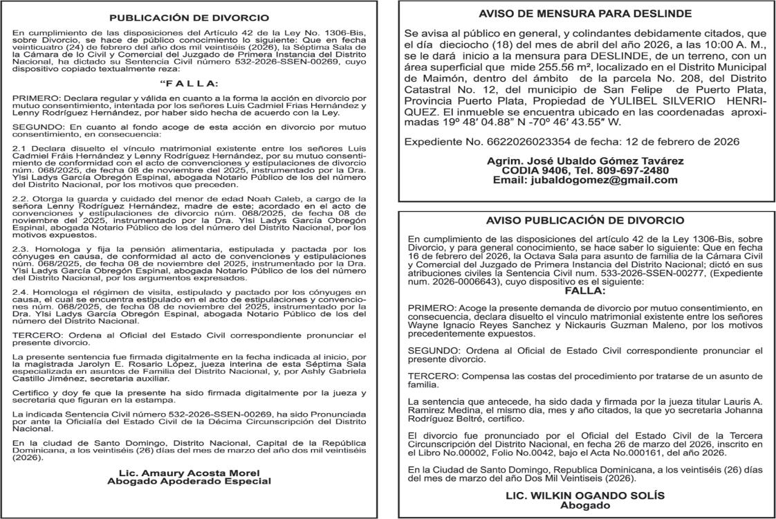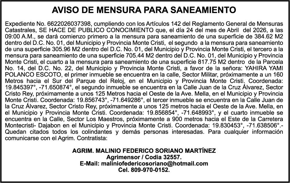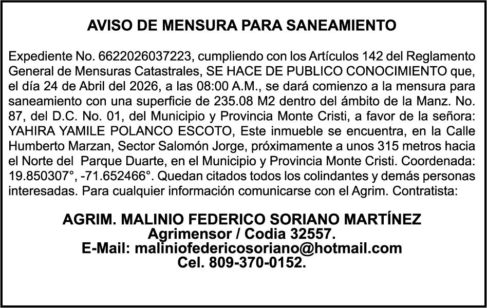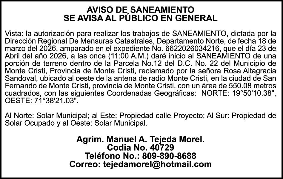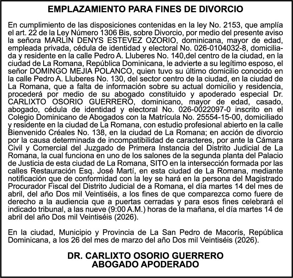 SE hace de público conocimiento la pérdida del Certificado Financiero número 831396775 emitido por Banco Popular Dominicano, S. A. Banco Múltiple, a nombre de GUILLERMO LORENZO ALMONTE, portador de la Cédula de Identidad y Electoral número 402-0077383-2 y GUILLERMO MANUEL LORENZO ORTIZ, portador de la Cédula de Identidad y Electoral número 001-1180879-6 certificado número 831396775 expedido el 28 de diciembre de 2022 por el monto de (USD$53,012.01) más intereses generados a la fecha.