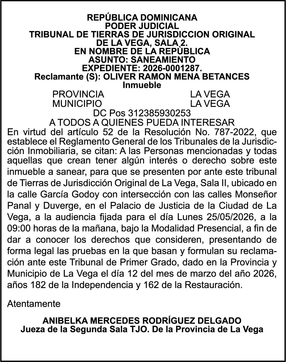 11:00 A.M. Presidente Abinader entregará títulos de propiedad a familias de Hato del Yaque e inaugurará dos canchas techadas en Cienfuegos (Santiago Oeste) y Licey al Medio.
