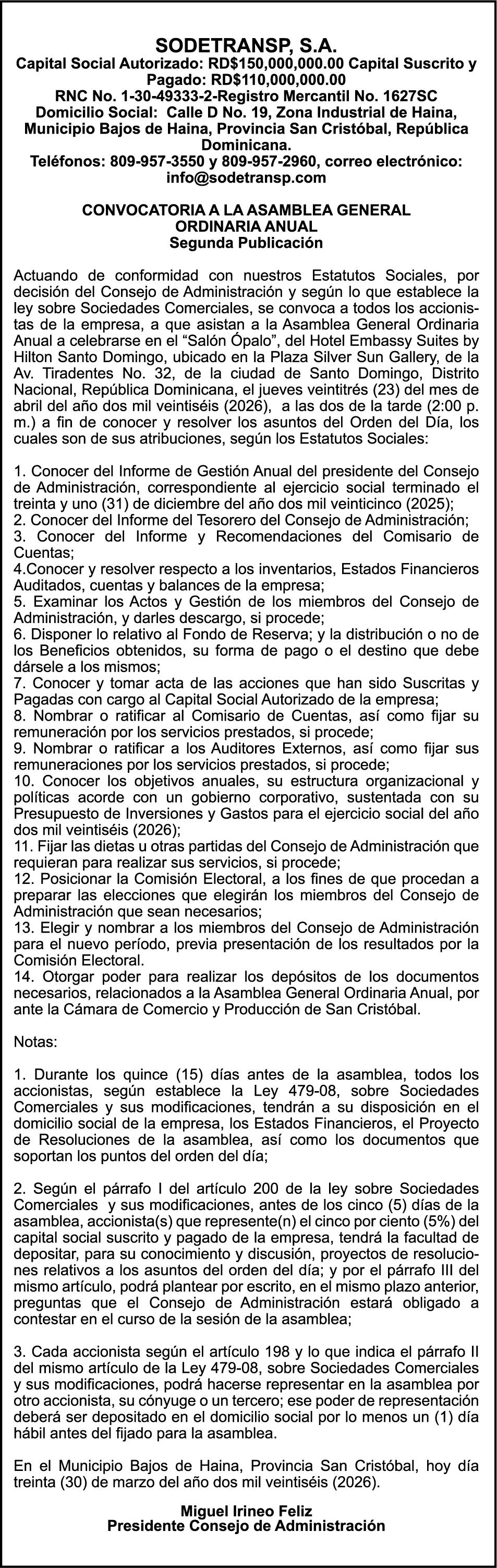 Aprovechando la Semana Santa, que simboliza la unidad, la fraternidad y la eucaristía, hizo un llamado al liderazgo nacional. Exhortó al presidente de la República a convocar a un gran diálogo nacional, en el que participen todos los sectores, empresariales, sociales, religiosos y mediáticos, con el objetivo de construir consensos reales.