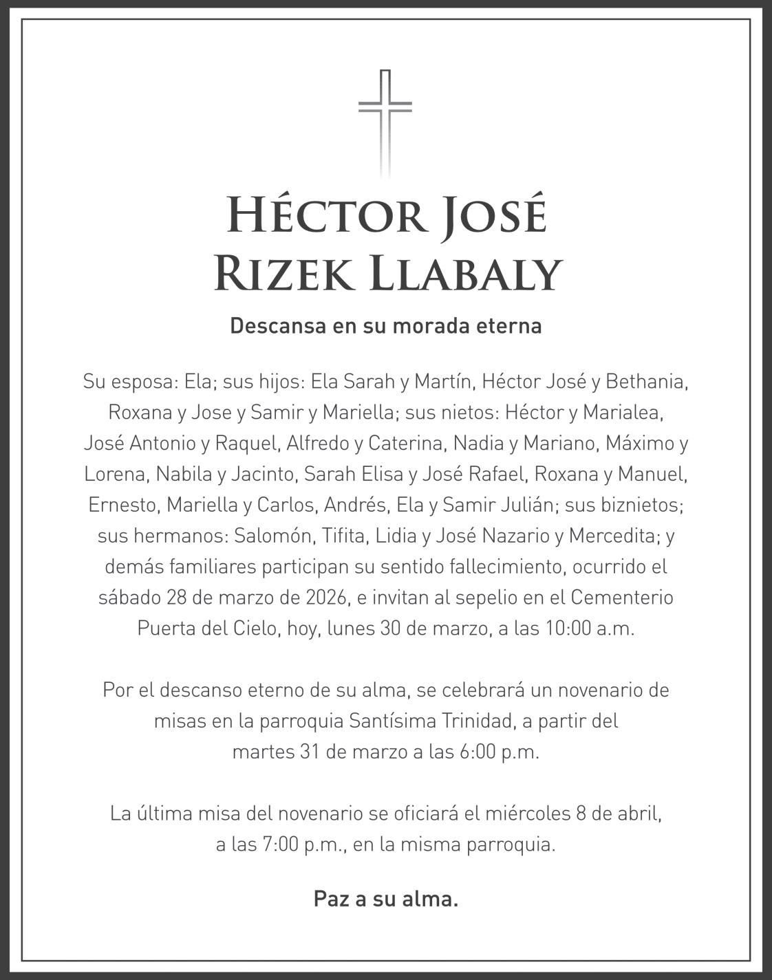 LUTO P .39 SEPULTAN HOY RESTOS DEL EMPRESARIO HÉCTOR RIZEK